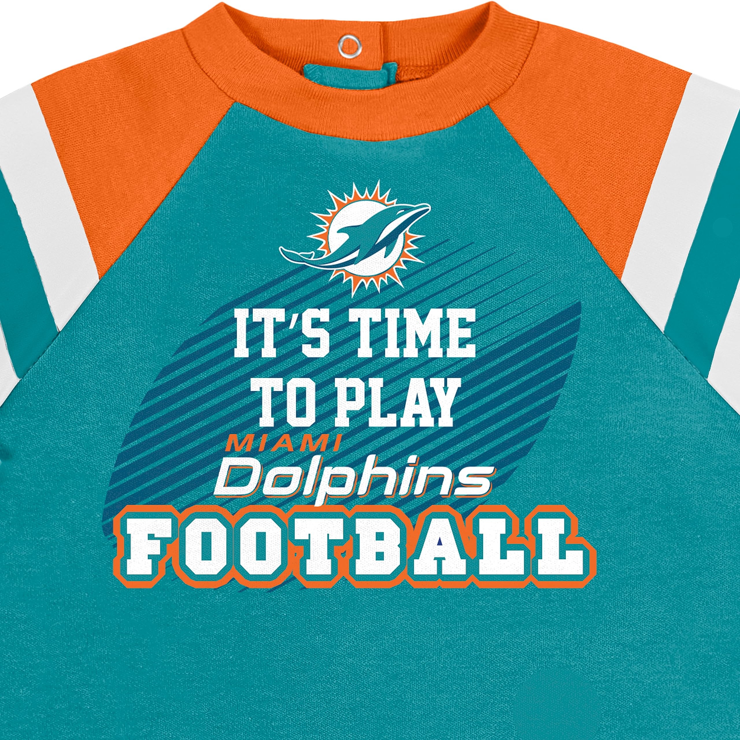 Team colors with screen print & puff print Dolphins logo &"It's time to play football!"