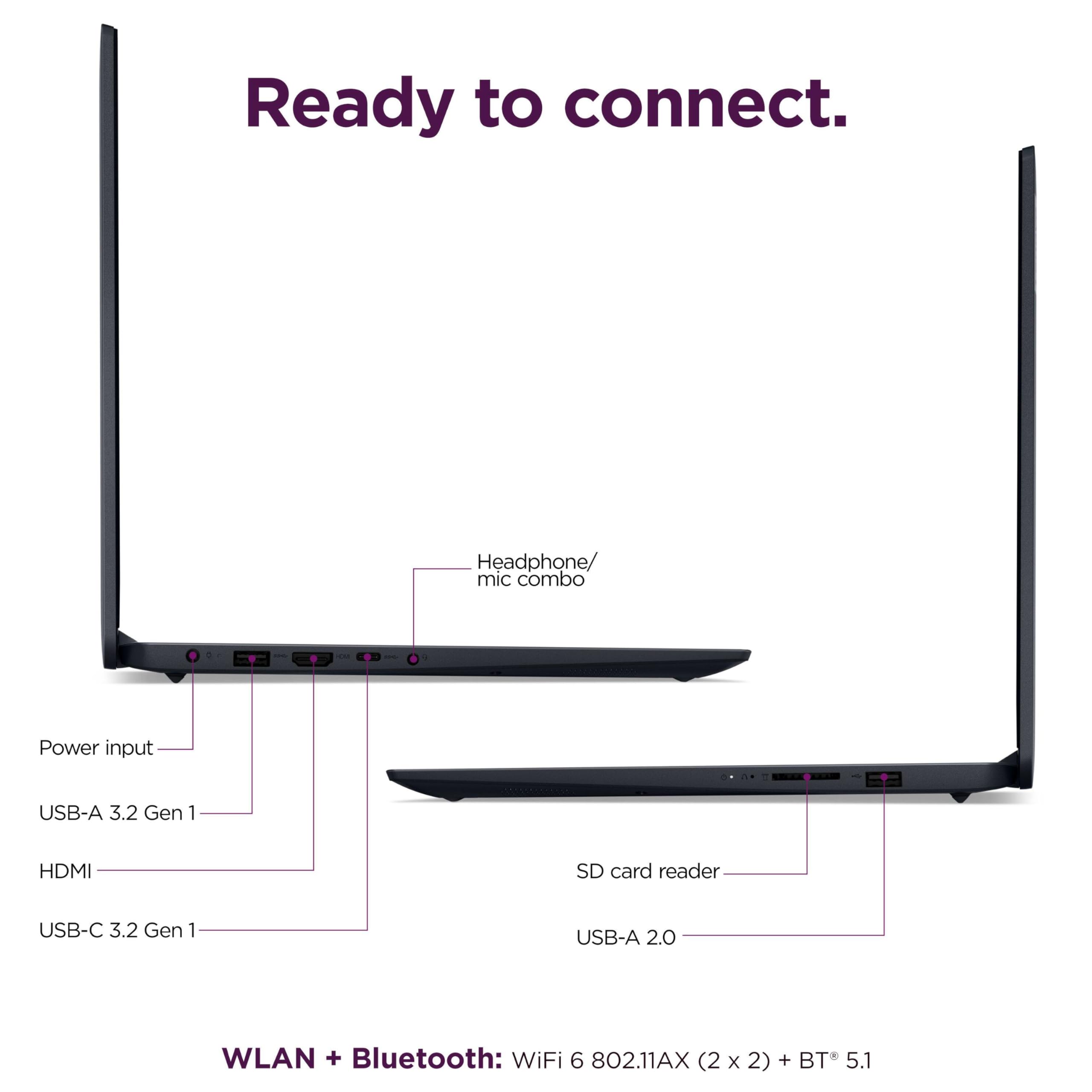 Running Windows 11 Home and presented in a midngiht blue design, the IdeaPad 1 combines style, portability, and functionality. It also includes an 8-in-1 bundled expansion hub for added connectivity, featuring additional USB, Ethernet, card readers, and a 4K HDMI port.