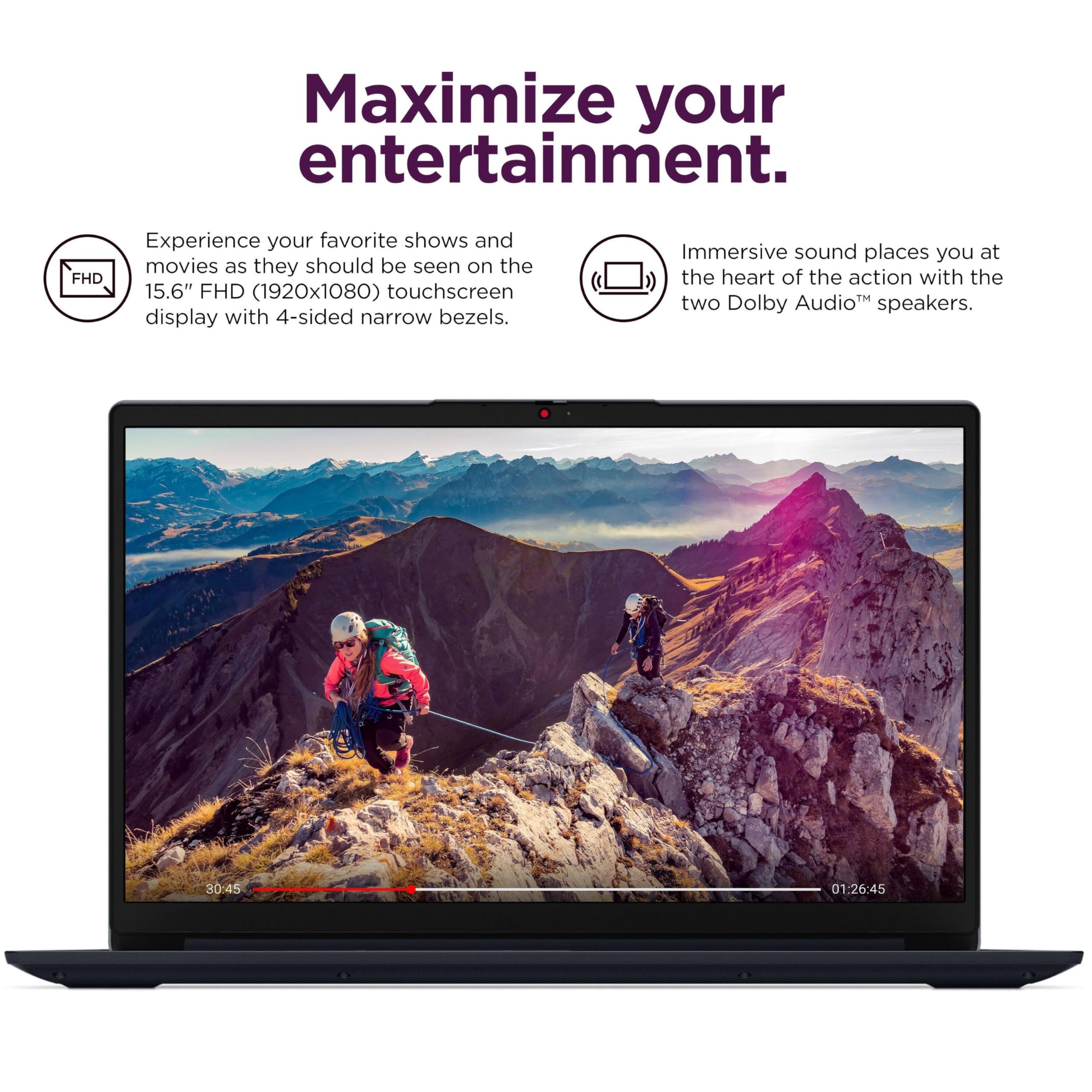 Enjoy your favorite content on an expansive 15.6" FHD IPS touchscreen display with 300 nits brightness and an anti-glare coating, all within a razor-thin frame. Backed by integrated Intel Iris Xe graphics and two Dolby Audio speakers, it delivers a clean, smooth picture and rich, clear sound.