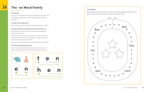 Help kids read and succeed with phonics! 101 activities for kid ages 3 to 6, from the Phonics Makes Readers series Reading fluency is one of the most critical skills for any child to learnβand phonics is the best way to teach it. Get your beginning reader excited about reading with this write-in phonics activity book filled with 101 lessons that teach them how to recognize letters, sound them out, and put them together in complete words and sentences. The science of readingβPut kids on the right path with an evidence-based workbook that focuses on the essential mechanics of reading, such as letters, blends, word families, and sight words. "I do, we do, you do"βDiscover a proven teaching strategy with lessons that include instructions for adults on how to teach your child each skill, followed by activities for you to do together and then for your child to do on their own. 101 on-the-page lessonsβExplore a complete learn-to-read program with a variety of activities like coloring, mazes, word searches, and more that make reading fun! Help your child learn to read with the fun and engaging lessons in this phonics activity book.