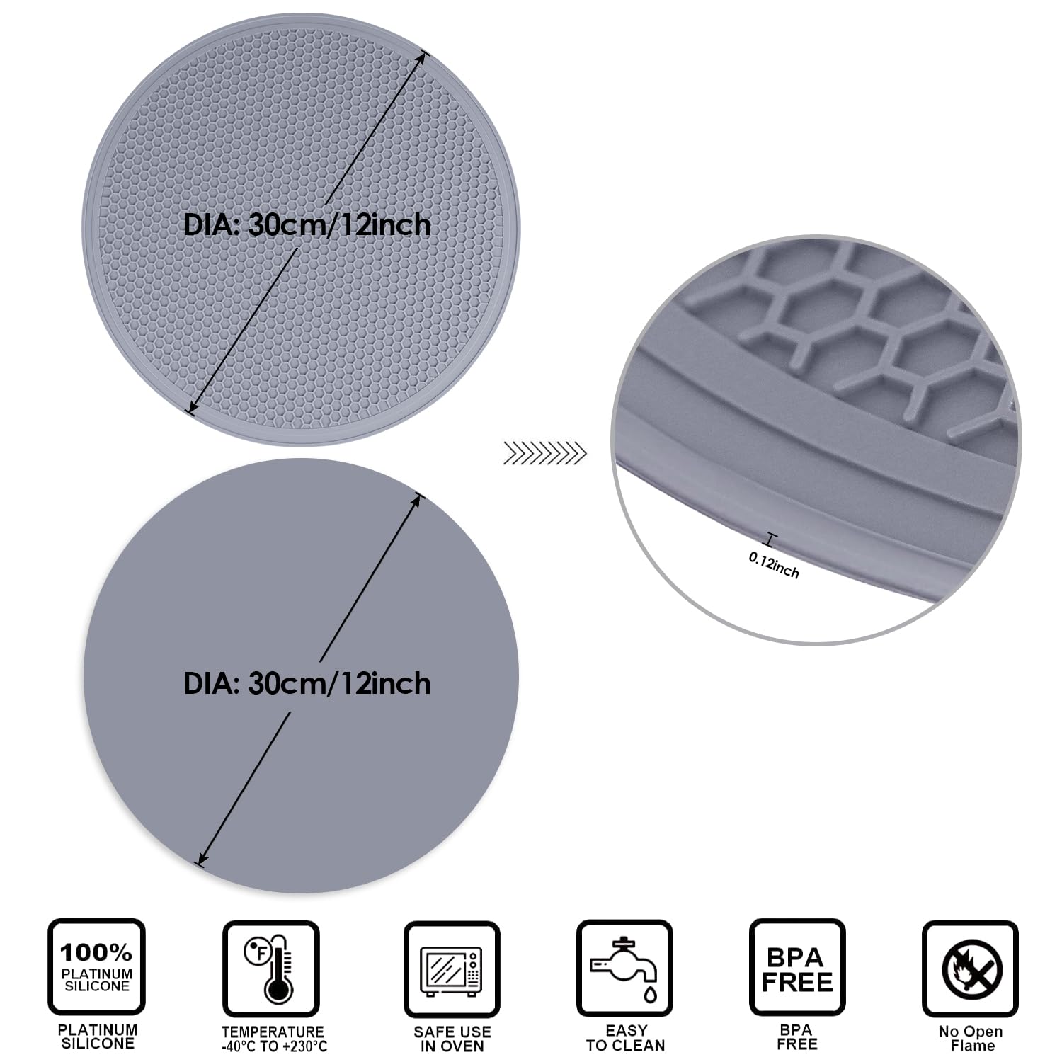🥘Heat Resistant Up To 450°F- Our microwave mat has 2mm anti-slip Texture that helps dissipate heat faster. Features raised edge to help effortlessly lift hot bowls and plates while protecting from heat. These silicone trivet mats are heat protection and insulated as a protector for countertops, tables, stoves, or others. Heat-resistant temperature from -40°F to 446°F(-40°C to 230°C), safe for use in the oven, microwave or anywhere you need extra grip or extreme heat.