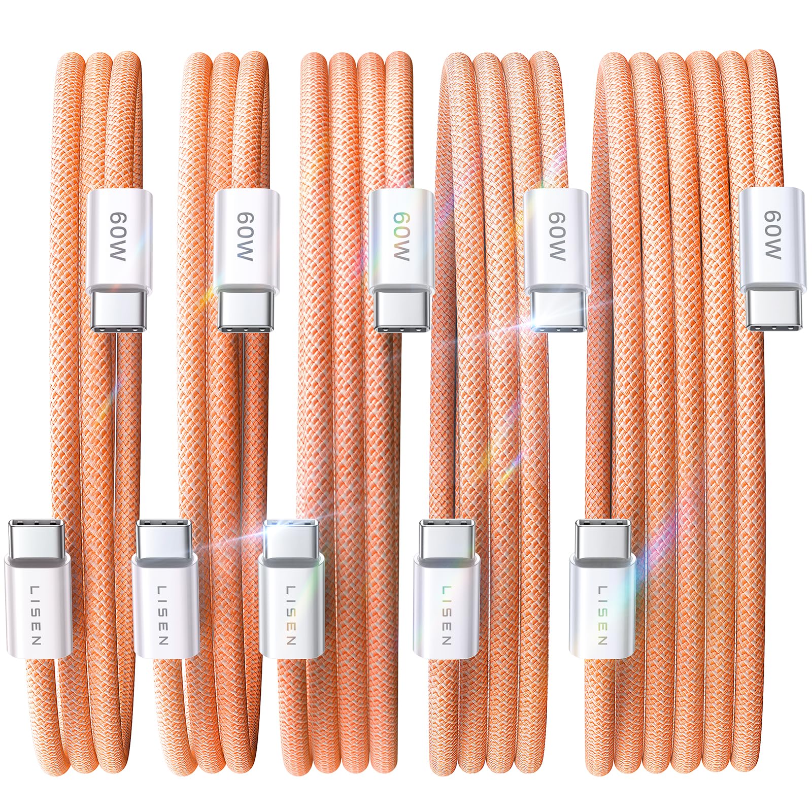 LISEN USB C to USB C Cable, 5-Pack [3.3/3.3/6.6/6.6/10FT] Orange