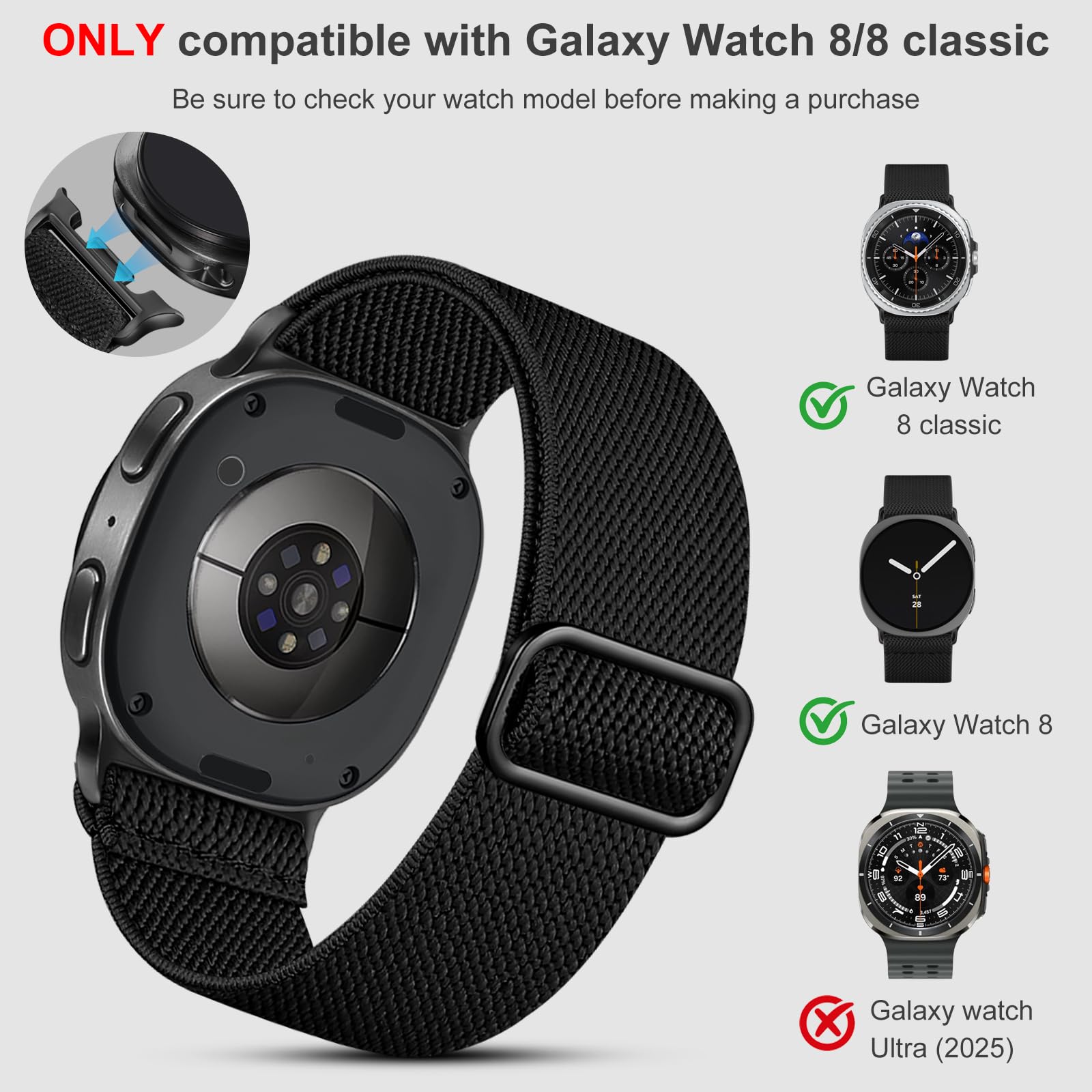 【 ONLY for Galaxy watch 8/8 Classic】 Lerobo 3 pack stretchy braided nylon solo loop bands ONLY compatible with Samsung Galaxy Watch 8 Band 40mm 44mm(2025)/for Galaxy Watch 8 Classic 46mm(2025),Not compatible for other watch.