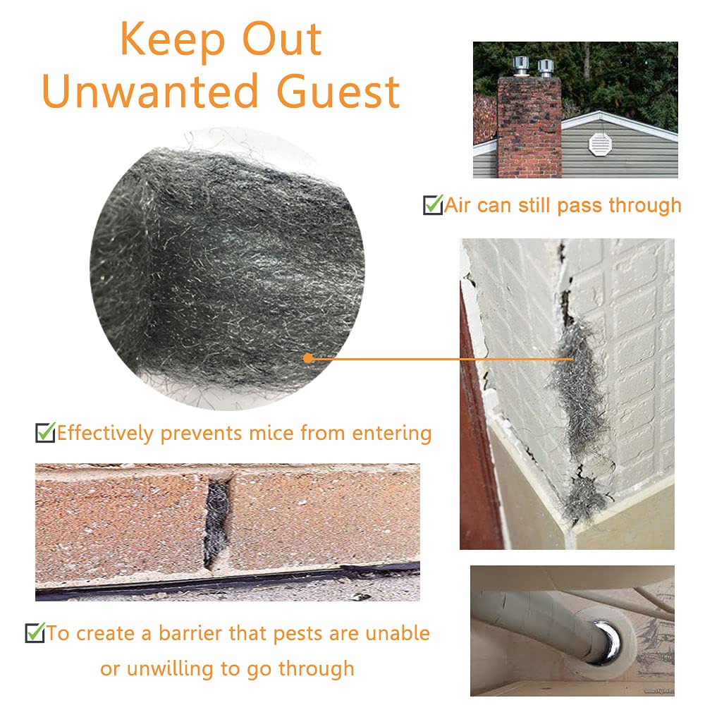 【Keep The Mice Away.】: Mice and all sorts of small animals will enter your home through holes of any shape and size. Steel wool can clog up drains, cracks in walls, ventilation holes, etc. in the house. To create a barrier that pests are unable or unwilling to go through. Effectively prevents mice from entering.