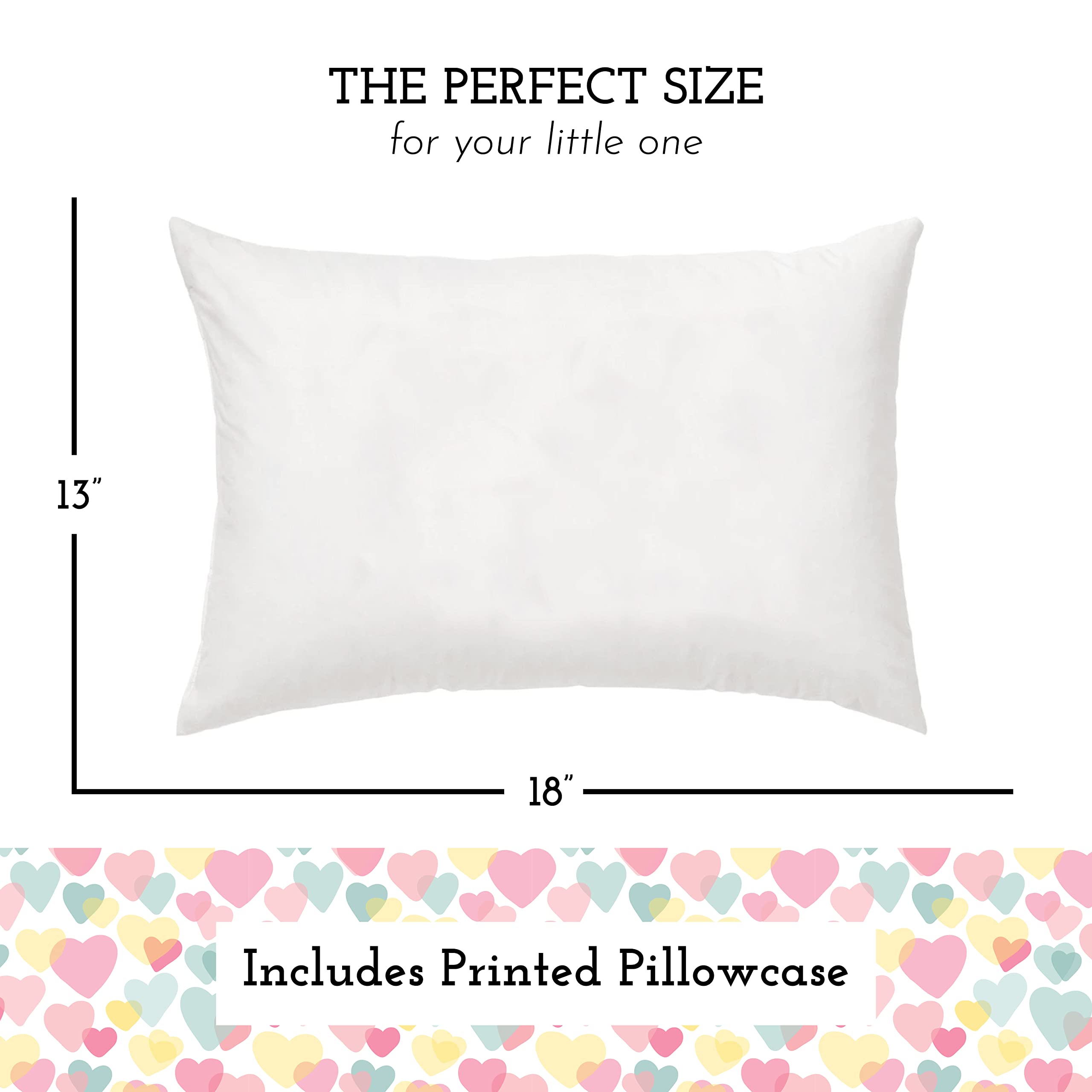 13" x 18" Toddler Pillow and Pillowcase - This snugly, take-it-everywhere he or she goes small pillow is THE perfect size and softness for your toddler! Our children's pillows are just right for their toddler bed too! Available in a variety of colorful designs that appeal to kids, the Little Sleepy Head toddler bedding set ensures sweet dreams wherever they lay their head.