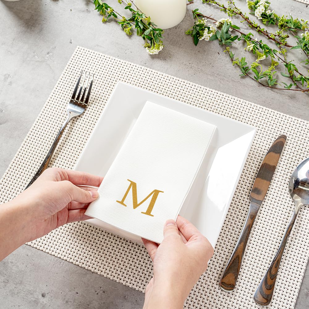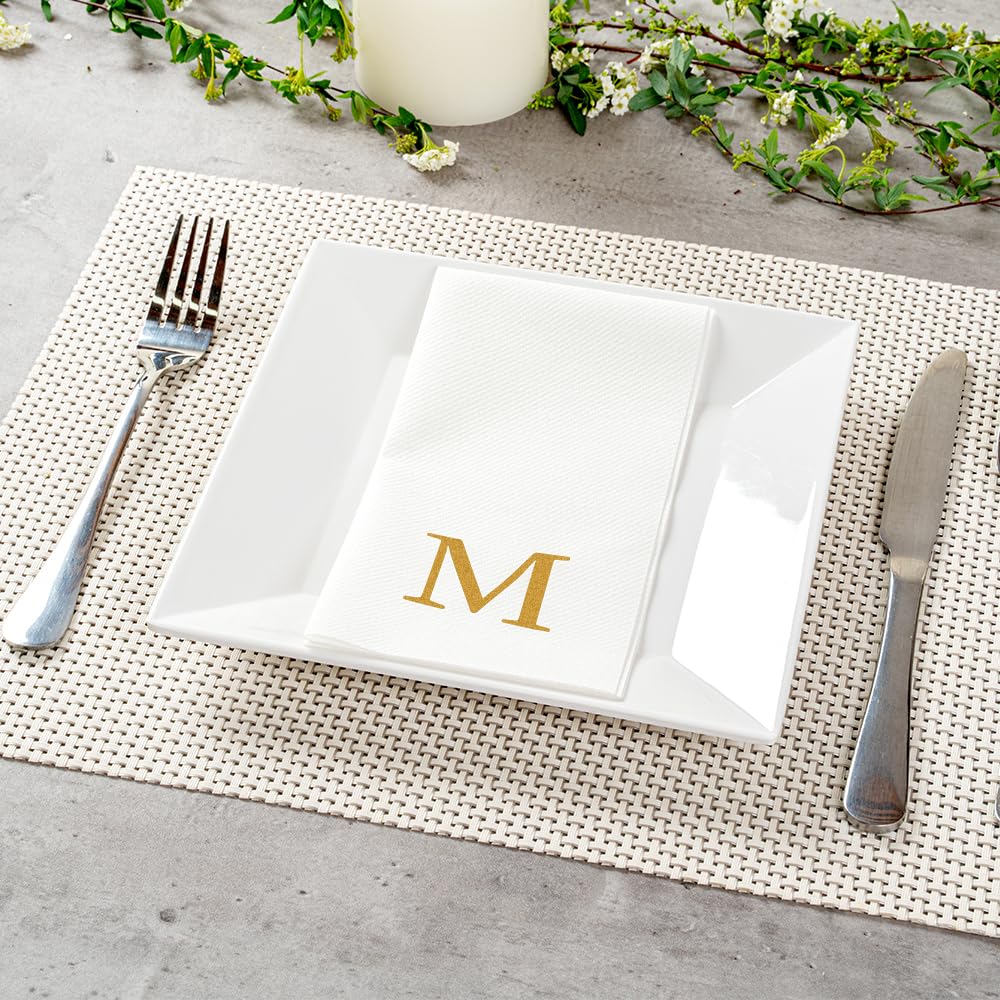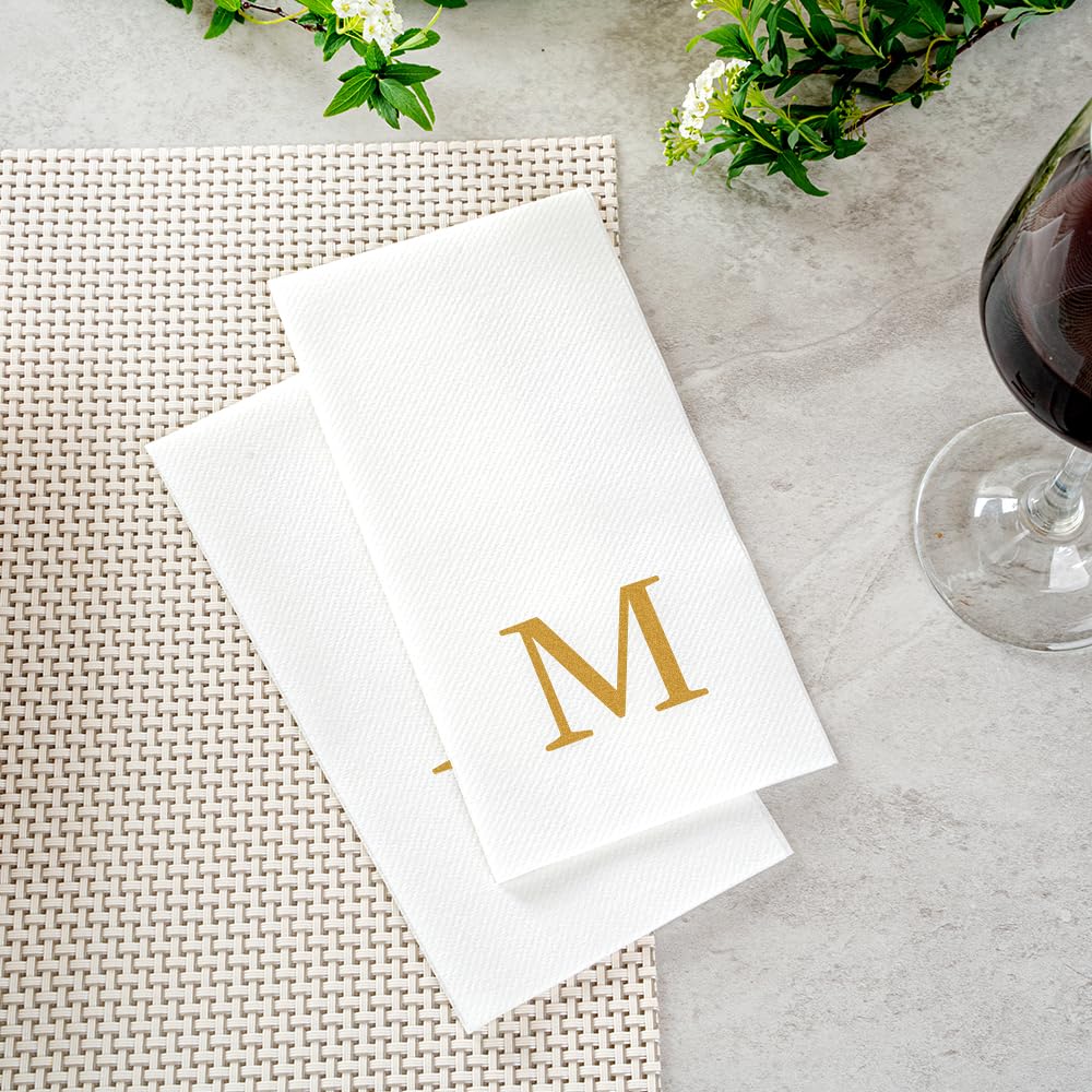 ELEGANT GOLD DESIGN: Featuring a gold letter "M", these napkins add a sophisticated and personalized touch to your table settings, ideal for wedding receptions or corporate events.