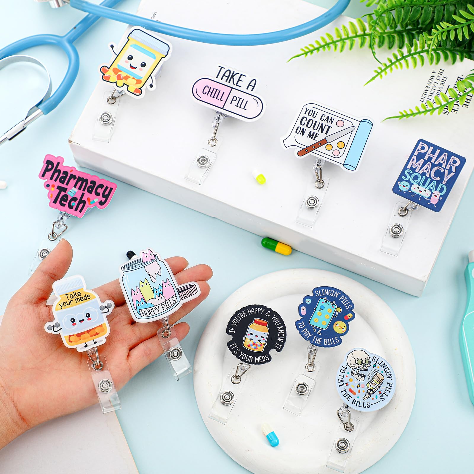 Package Includes: each package comes with 10 pharmacy themed badge reels; These med tech badges serve as a practical yet fun item, suitable for personal use or distributing amongst your pharmacy colleagues