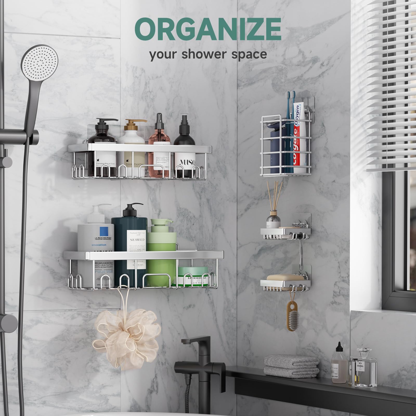 Comprehensive Organization: This 5-piece set includes large, medium, and small caddies, along with soap and toothbrush holders, providing versatile storage for all your shower essentials
