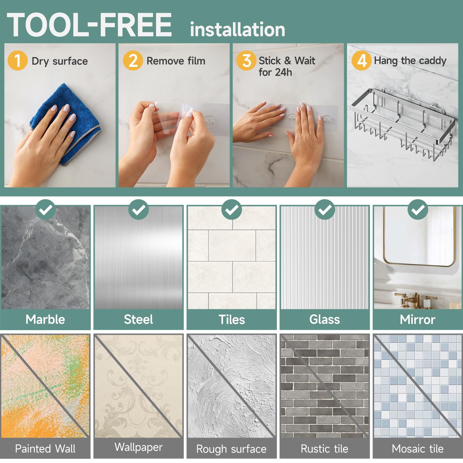 Versatile for Family Use: Perfect for family bathrooms, this set adapts to various needs, making it easy to organize shampoos, soaps, and more; enhancing shower convenience for everyone