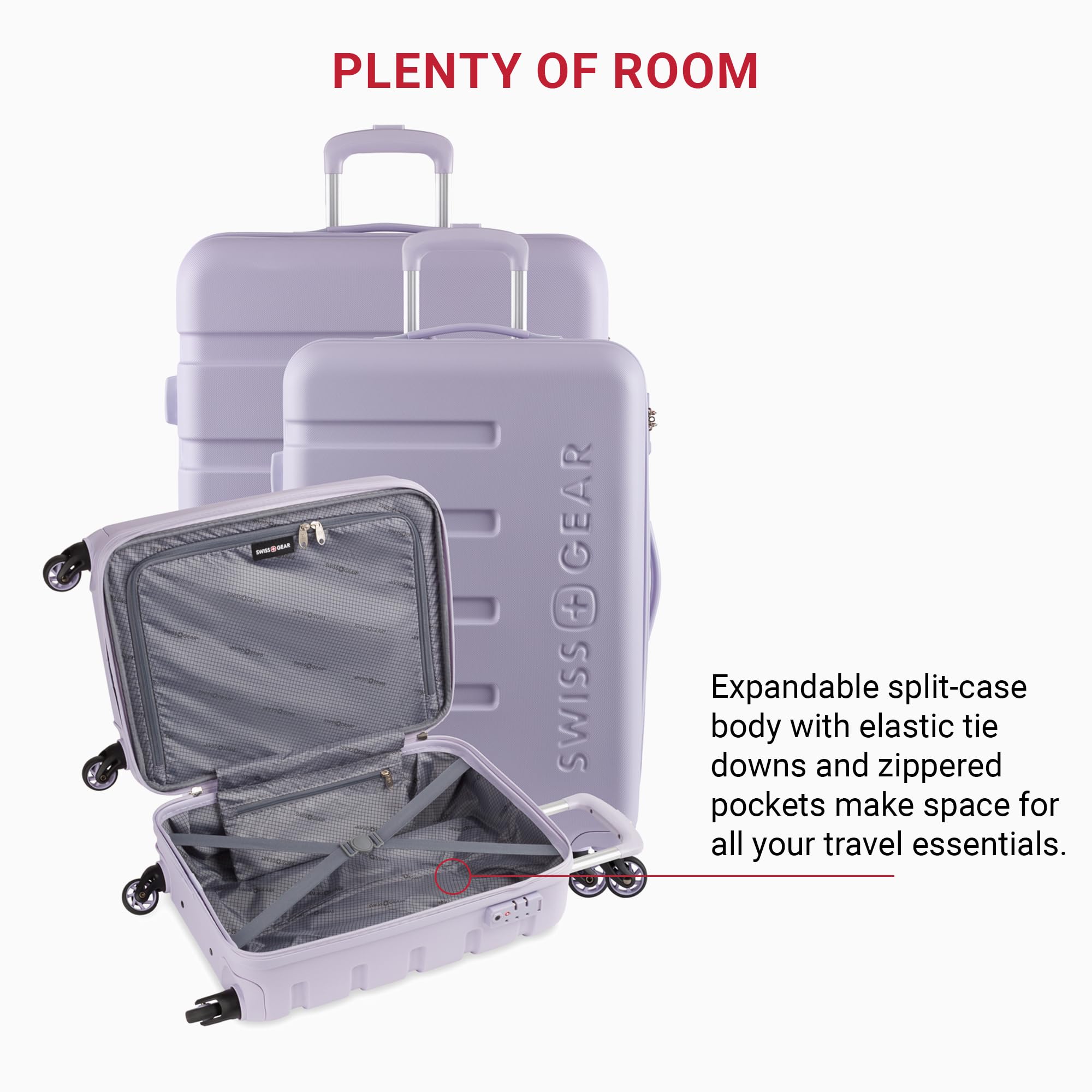 Description Travel in style with the SwissGear Signature Expandable Hardside Luggage Set. Both modern and utilitarian, its lustrous metal zippers and rugged construction exemplify its long-lasting quality. The set contains the 19” Carry-On, 23” and a 27" Expandable Hardside Luggage. Its almost indestructible split case opens to display the main compartment equipped with tie-down clothing straps, a roomy zippered lid pocket, and a large zippered packing pocket to keep your travel-sized essentials separate from your clothes. It also includes a premium steel locking handle, four 360-degree wheels, expandable packing space, and a molded grab handle. Guaranteeing extra security with its built-in TSA-approved three-dial combination lock, make this a go-to for your upcoming voyage because, whether traveling for business or pleasure, this is doing adventure the right way.