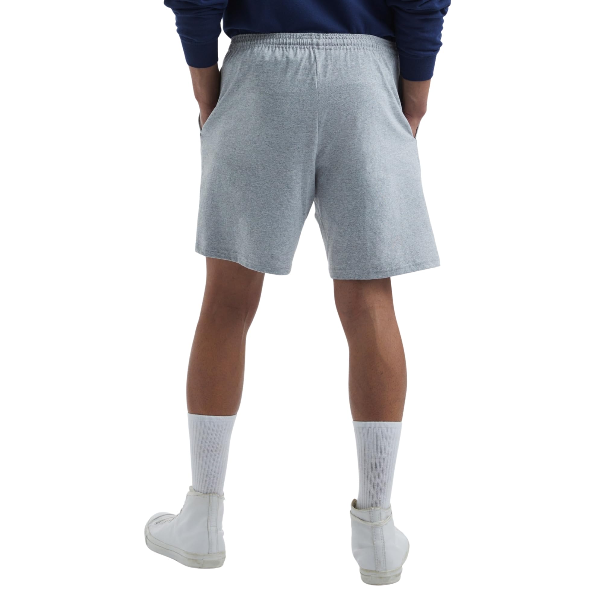 Description It's no wonder these cotton jersey shorts from HanesĀ® for men are bestsellers. These ultra-versatile knit shorts are just the thing to slip into after work, to wear to the gym, to relax in on movie night, or even to wear to bed. Simply styled, they pull right on, with an elasticized waist and adjustable interior drawstring. Handy side pockets hold keys and other essentials. These pull-on lounge shorts are a mid-thigh length with a 7.5" inseam. We suggest having several pairs of these comfortable cotton jersey shorts on hand. You'll wear them again and again.