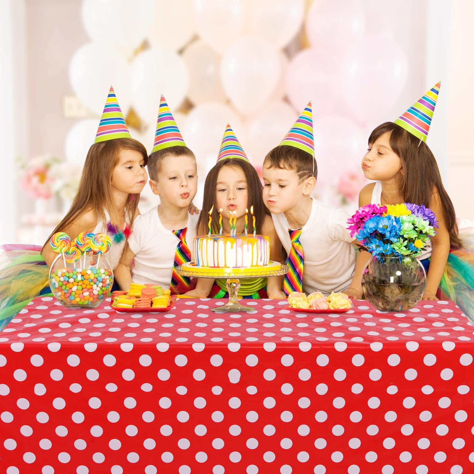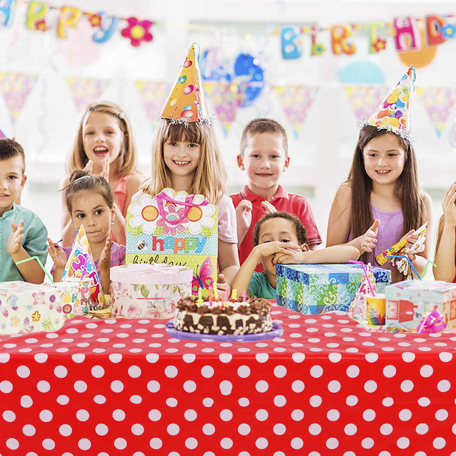 Proper size: These Red and White Polka Dots Party Table Cloth measures approximately 54 x 108 inch which is designed with These plastic tablecloths are designed with a classic polka dot pattern that fits nicely into the colors of a Mickey Minnie Mouse themed party.Easy to cut into any shape to fit Mickey Mouse party background