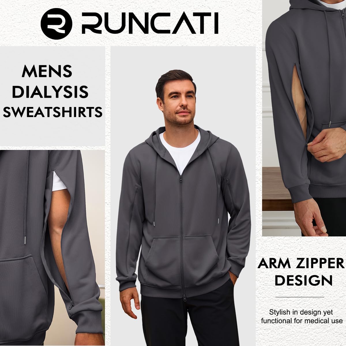 Arm Zipper --- Mens lightweight hemodialysis jacket are specially designed to provide easy arm dialysis port access, easy access to someone who has a lower, mid, or upper arm AV fistula/graft, and for someone who has a PICC line