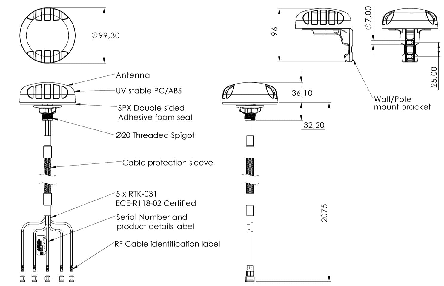 Poynting’s new PUCK antenna offers a small profile antenna for use in the IoT/M2M, Smart Meter, Smart Utilities, Transportation, Marine and the Agricultural/Farming markets. The PUCK-5 consists of a 5-in-1 antenna system within a single housing, featuring 2X2 MIMO LTE, 2X2 MIMO Wi-Fi (Dual-band 2.4 GHz & 5 GHz) and GPS/GLONASS. The 2x Cellular MIMO antennas (for 2G/3G/4G) cover the 698 MHz to 3800 MHz band, this includes the most popular international LTE bands. The antenna provides two separate dual-band Wi-Fi antennas offering concurrent 2.4GHz and 5 GHz bands, capable of 802.11n and 802.11ac/ax with 2x2 MIMO. The fifth antenna is a high-performance active GPS/GLONASS system operating at temperatures as low as -40ºC. The PUCK-5 is suitable for the following Cellular frequency bands 698-960 MHz, 1710-3800 MHz and the following Wi-Fi frequency bands 2400-2500 MHz and 5000-6000 MHz. Poynting Part # A-PUCK-0005-V1-B
