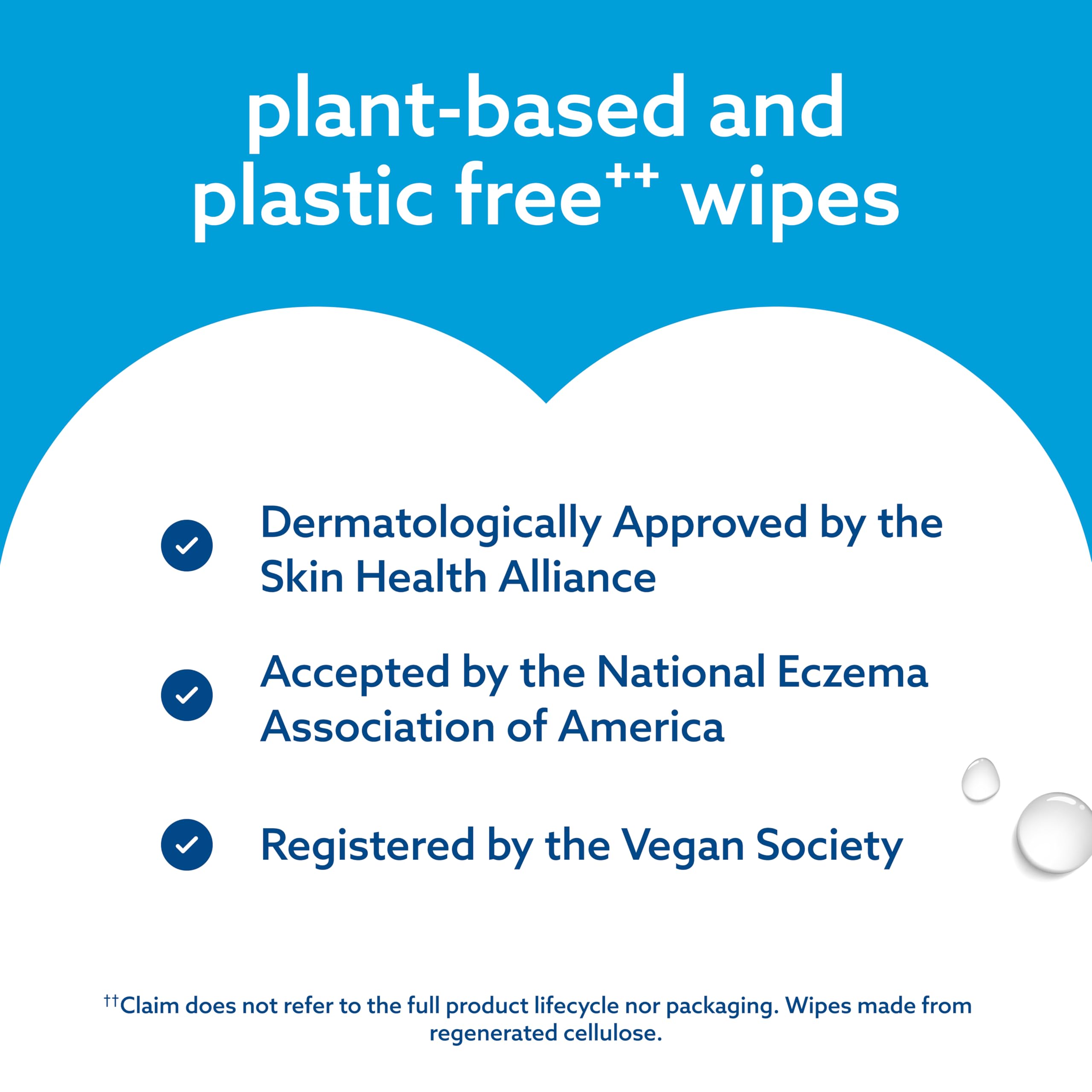 PLASTIC-FREE*, PLANT BASED WIPES: Suitable for eczema-prone skin and allergy sufferers, WaterWipes are Dermatologically Approved by the Skin Health Alliance, accepted by the National Eczema Association of America and registered by the Vegan Society. *Claim does not refer to the full product lifecycle nor packaging. Wipes made from regenerated cellulose.