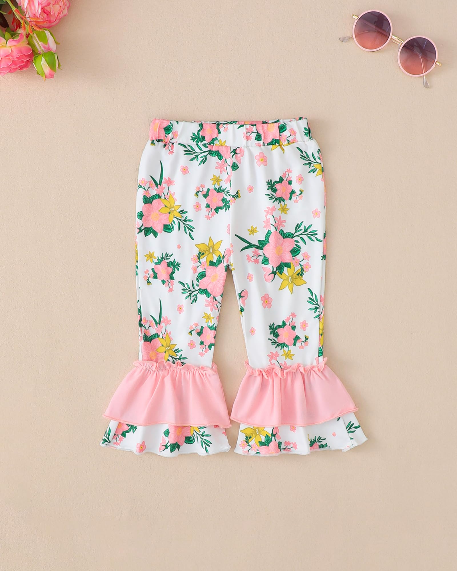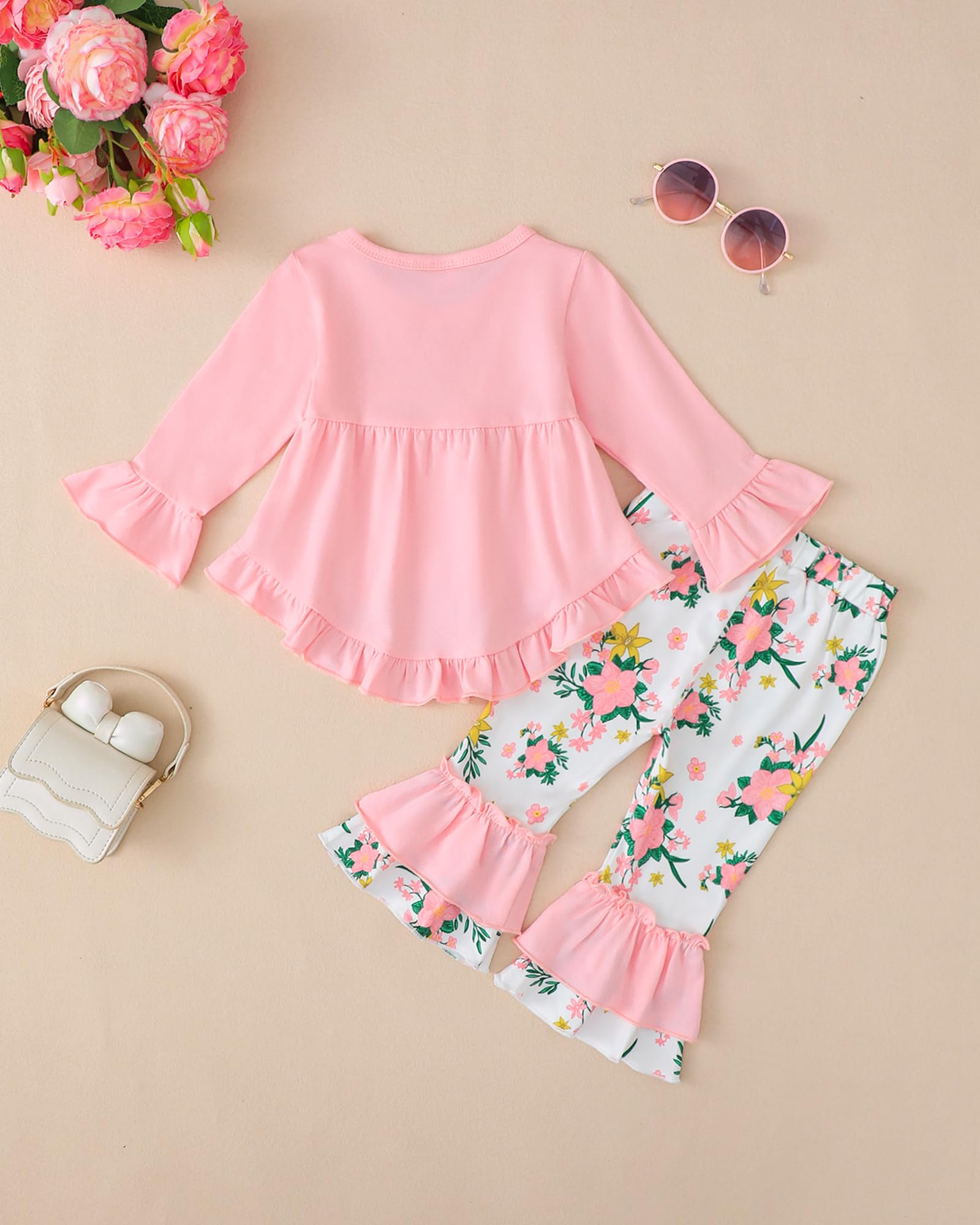 Design :Toddler long sleeve t shirt with cute floral print bell bottoms;irregular hem and flared leggings pants,comfort for walking,running and playing, fit for different body size,and easier to put on and off.