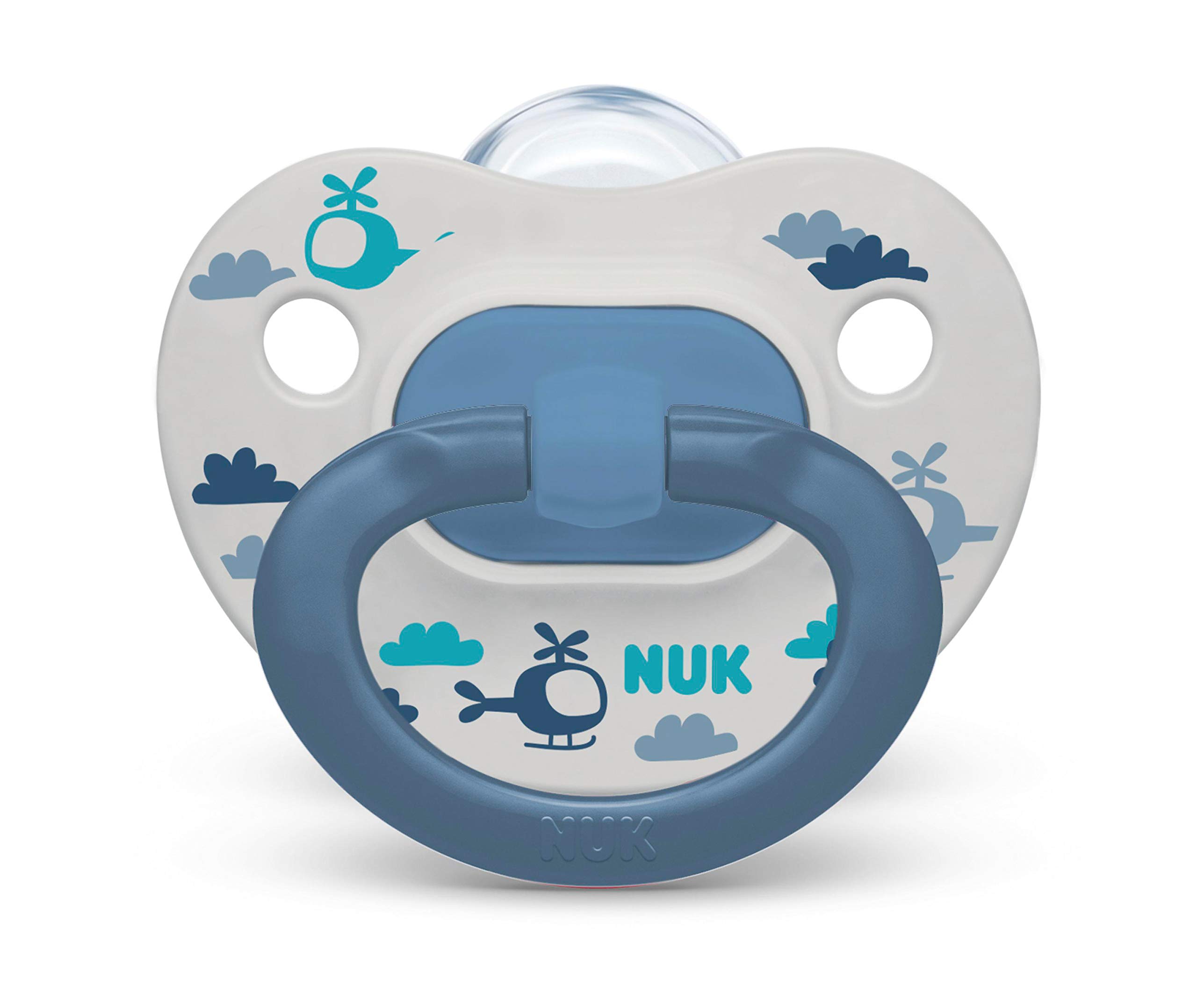 Having a difficult time finding the right pacifier for your baby? The new NUK pacifiers are accepted by 95percent of babies* and feature the improved orthodontic nipple shape. NUKβs asymmetrical nipple naturally fits babyβs palate and is now improved to allow for more room for a natural sucking motion, reduce pressure on teeth and jaw, and helps prevent teeth misalignment. Invented over 60 years ago by pediatric dentists and doctors, the NUK pacifier is modeled after the natural shape of momβs nipple while breastfeeding. This makes for an easy transition from breast to pacifier and back. The NUK heart-shaped shield fits perfectly under babyβs nose for easier breathing and prevents irritation. With super-cute designs, this pack of 2 orthodontic pacifiers is ideal for your child aged 18-36 months. (*Based on Market Research, 2017, tested with 307 pacifier users).