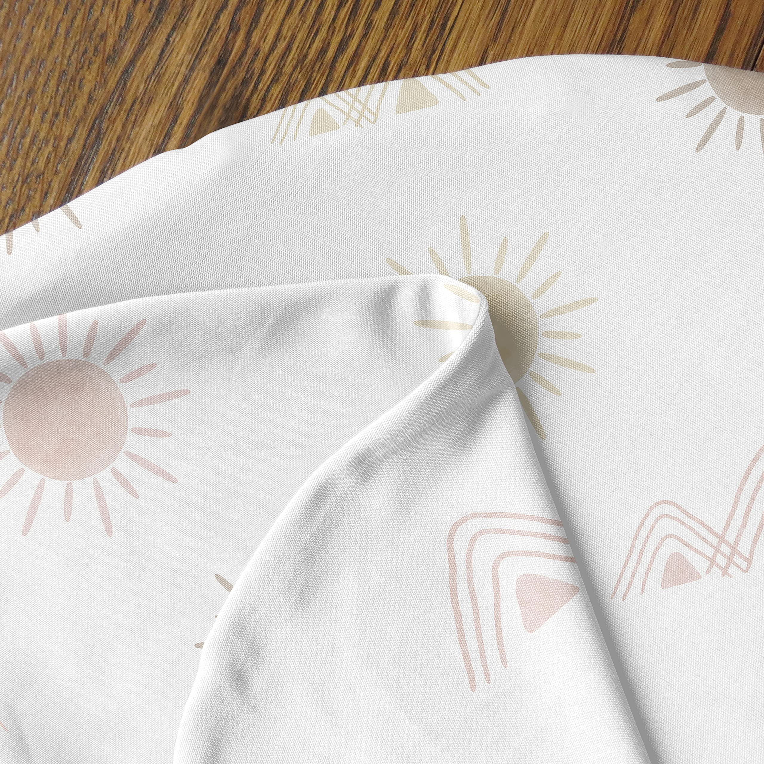 95% Rayon / 5% Spandex Jersey Stretch Knit featuring pink, mauve, and taupe watercolor sun and mountains