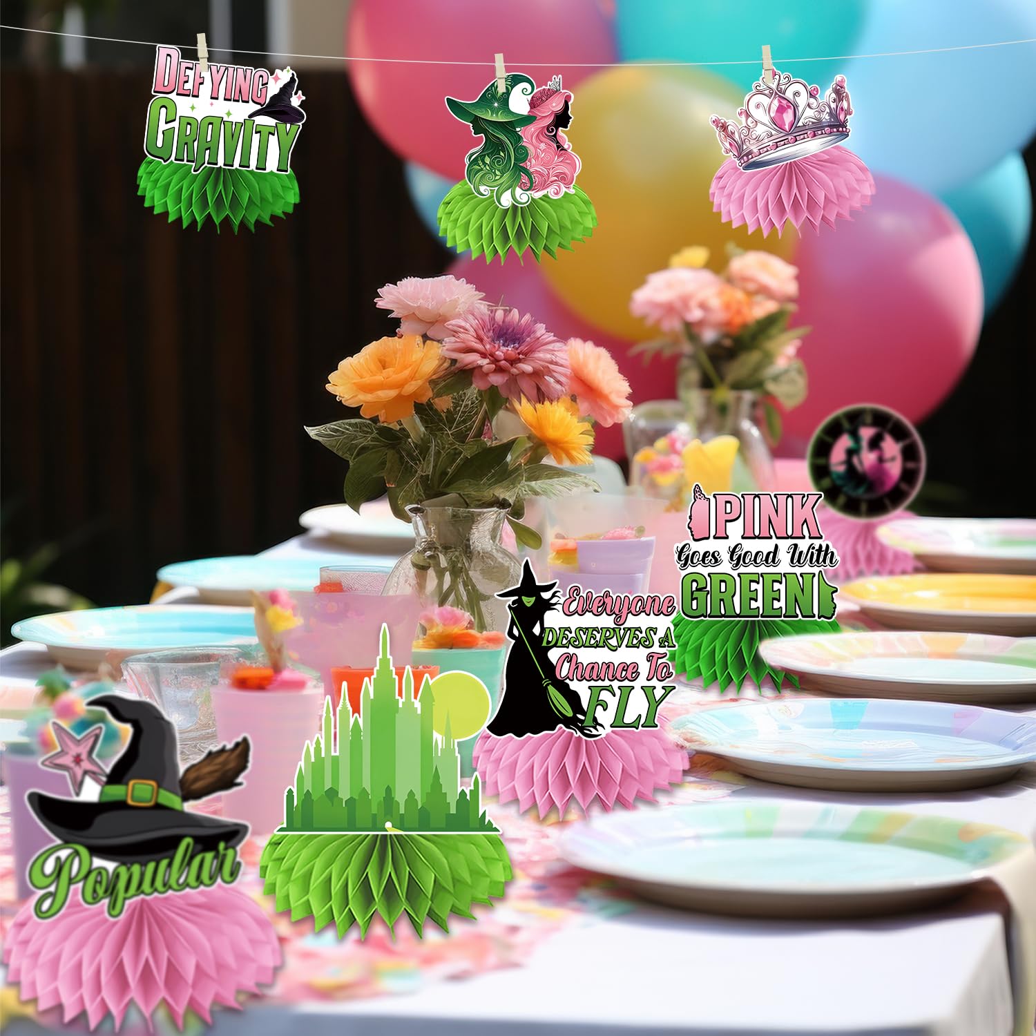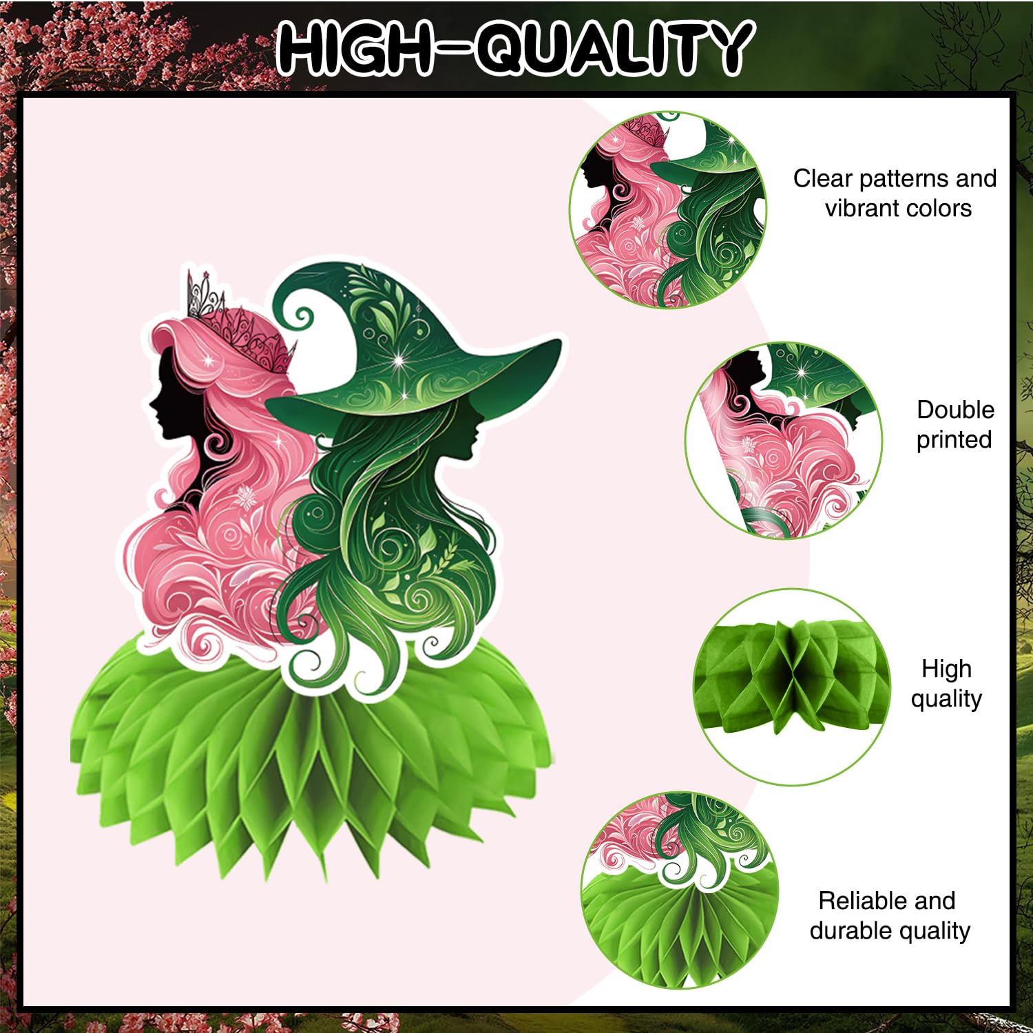 Adorable Design: The witch honeycomb centerpieces features a charming movie-inspired theme with classic green and pink color elements, creating a fun and whimsical atmosphere that's perfect for fans of this movie, leaving you with unforgettable memories.