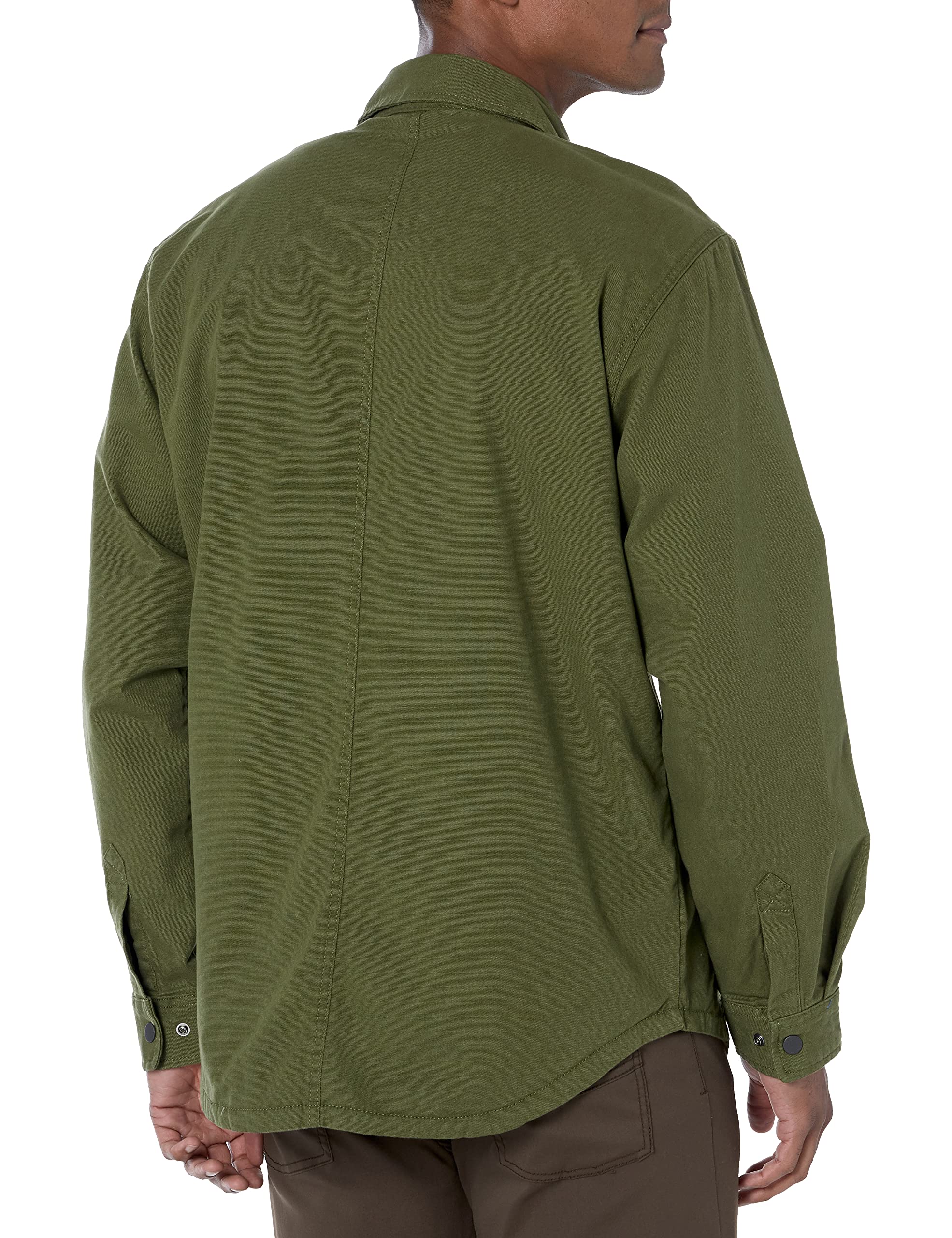 Description A workwear go-to, this men's Carhartt shirt jac is ready for cold days on the job. A fleece lining adds comfort and extra warmth. The roomy relaxed fit and durable stretch canvas give you the range of motion needed to stay working.