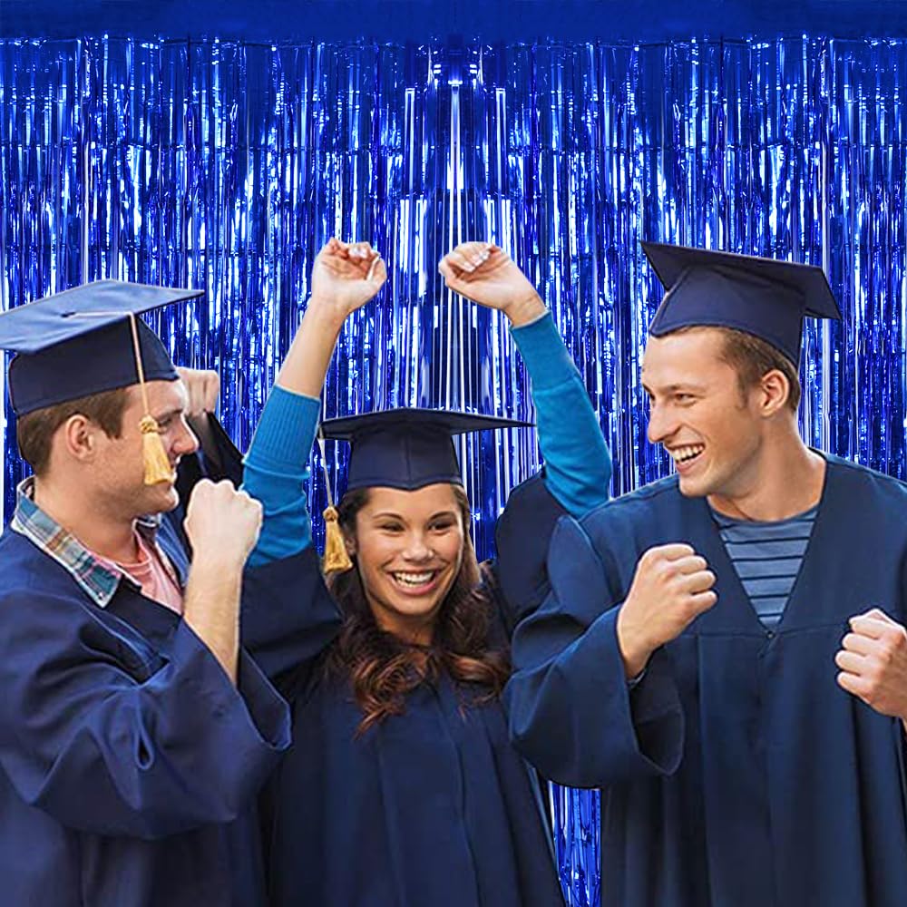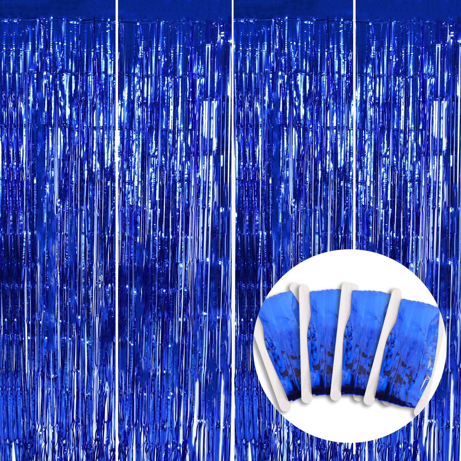 Blue Party Streamers Size - The 4 pack streamers curtain size is 6.56Ft(Length) X 3.28Ft(Width). The fringe backdrops are perfect to make an elegant entrance curtain for your party decorations.