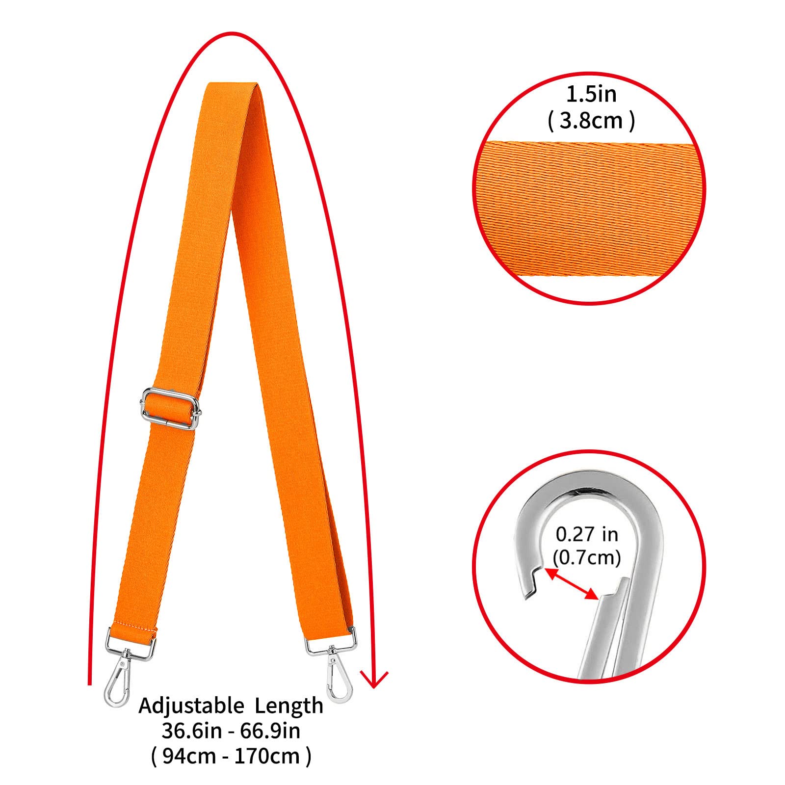 ★Adjustable - Adjustable length(including snap hooks): 36.6"~66.9"(94cm-170cm), it is long enough to wear on the shoulder or cross body, use it as a decorative accessories for your bag also a good choice.