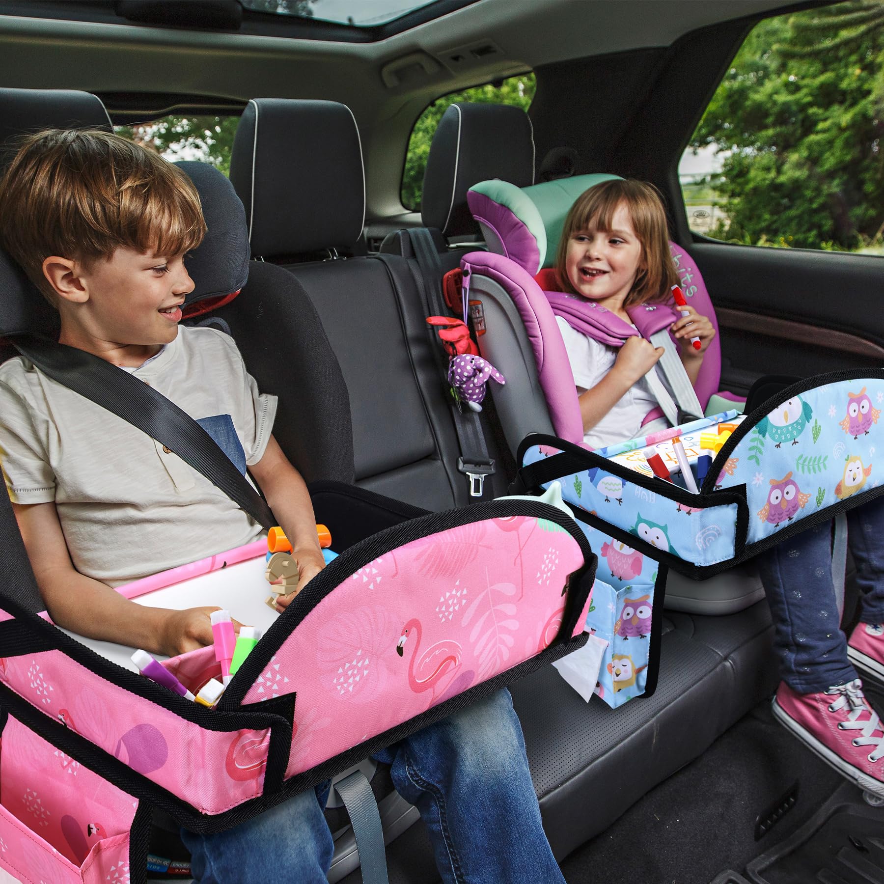 Easy to Clean: Made of five layers of material, the 600D Oxford material ensures a lightweight yet tough quality. Toddler car tray surface of the product adopts a wipeable panel, which means that any marks left by kids eating or drawing on it can be easily wiped away without having to worry about getting dirty and difficult to clean