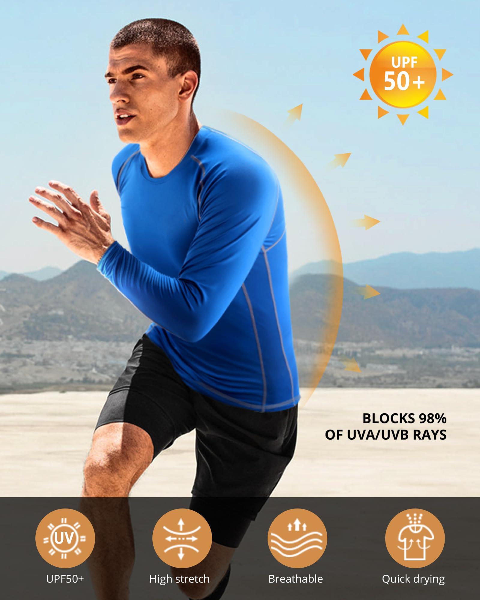 【Quick Dry Fabric】This men's compressions long-sleeve t-shirt, made from quick-drying fabric, offers excellent moisture-wicking, ensuring you stay cool, dry, and comfortable during workouts, providing optimal skin comfort