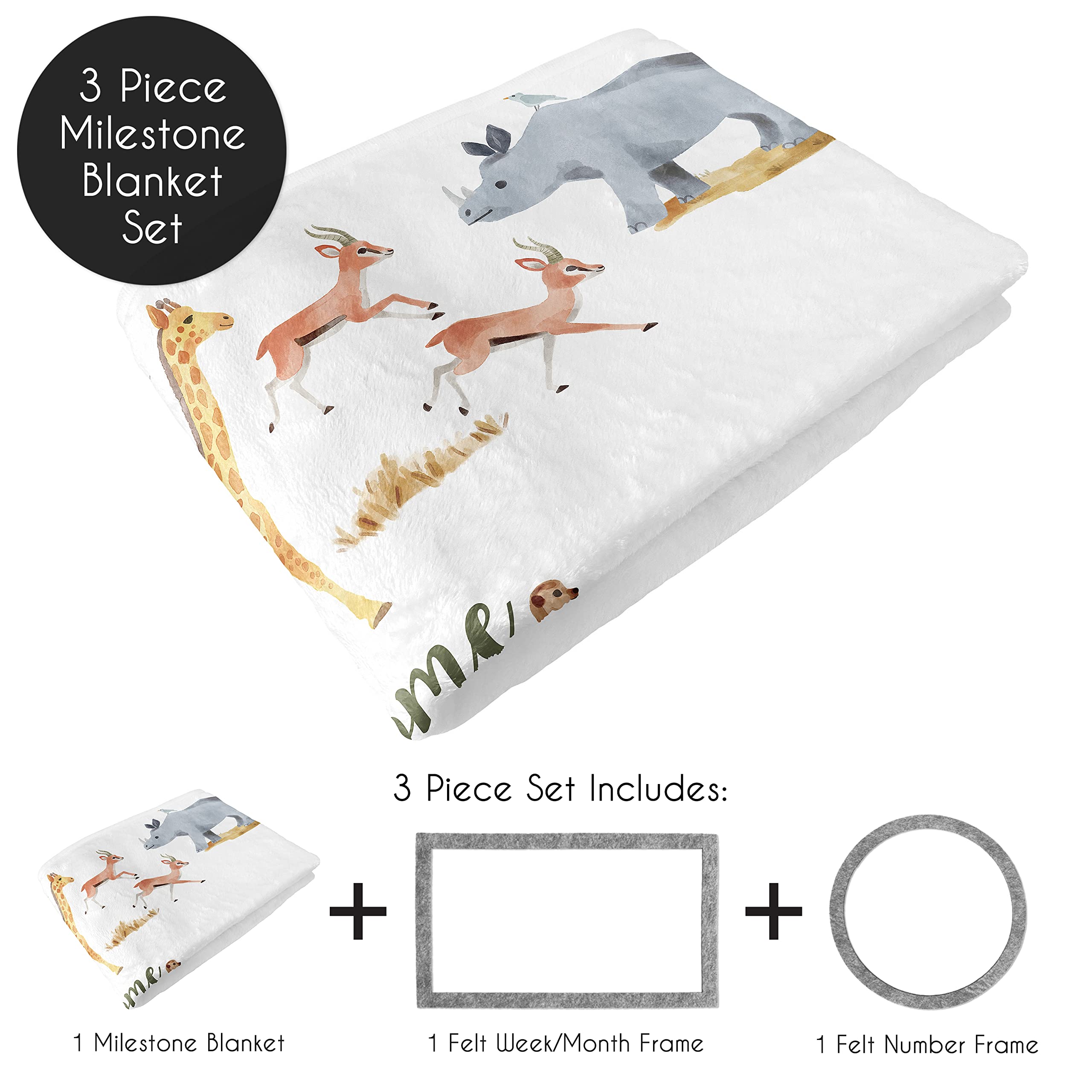 Includes (1) 40in. x 50in. blanket and (2) week/month frames