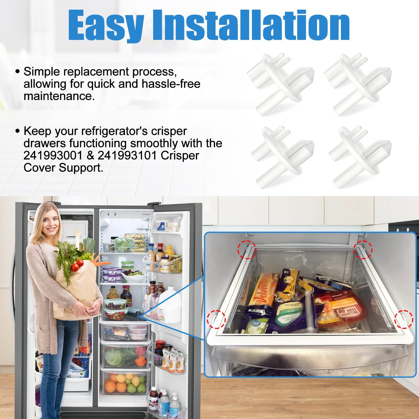 【Easy Installation】4 packs 241993101 crisper cover support and frigidaire part 241993001 frigidaire replacement shelf, Simple replacement process, allowing for quick and hassle-free maintenance. With these essential components, you can extend the life of your produce and maintain optimal organization within your frigidaire refrigerator.