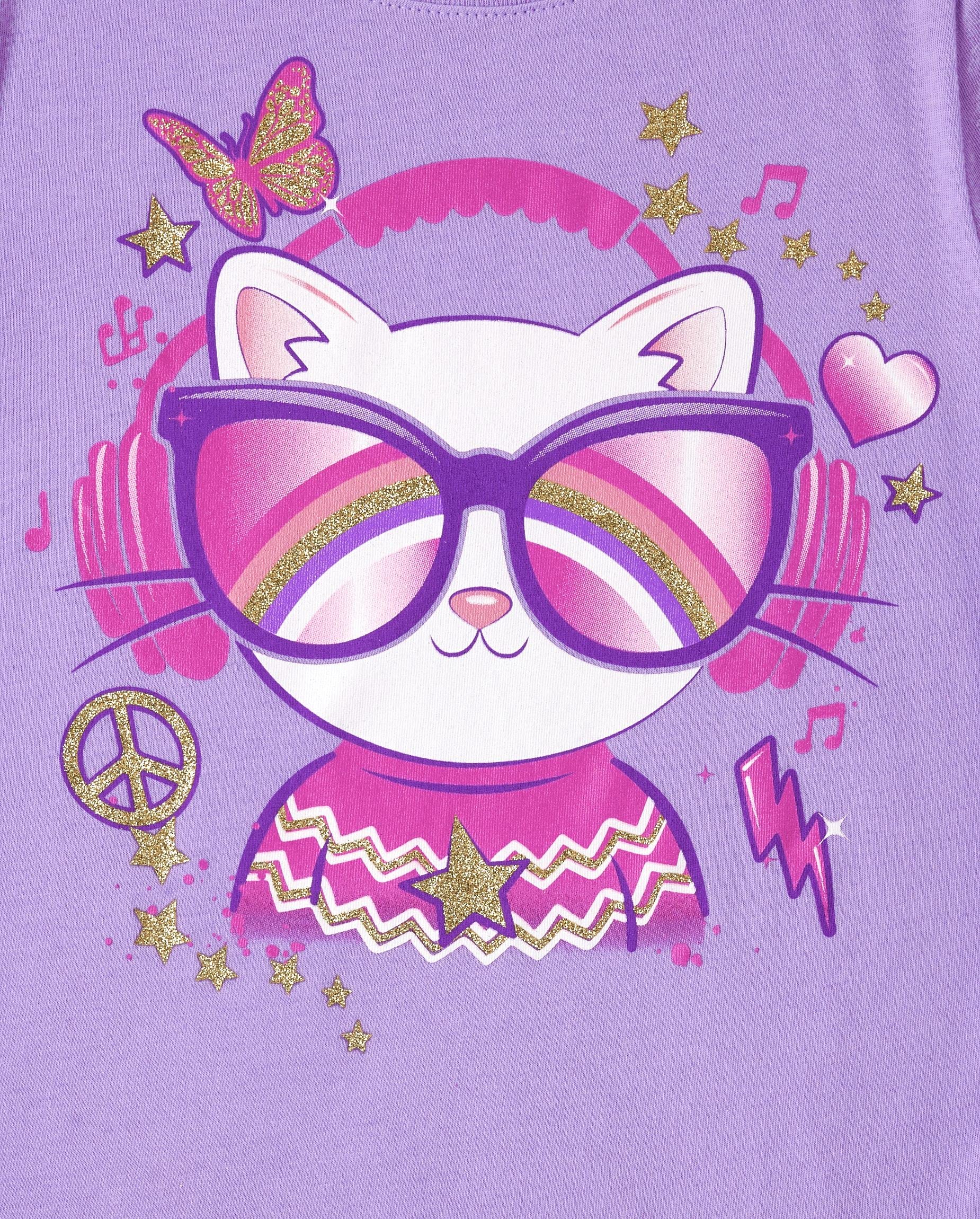 MULTIPACK β 3-pack of graphic tees: 1 style with rainbow and icons graphic design at front; 1 style with cat in sunglasses and headphones graphic design in front; 1 style with unicorn graphic design at front