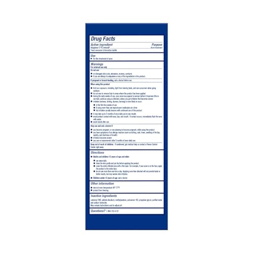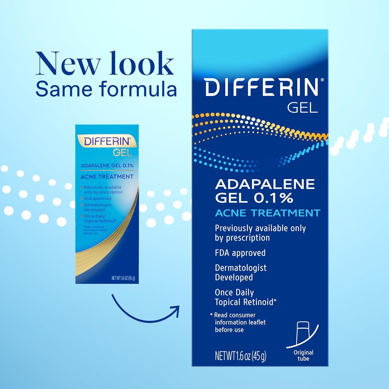 Differin Gel Acne Treatment contains adapalene, an Rx-strength acne-fighting retinoid that helps clear breakouts where they start (works deep into pores in 5 minutes), helps prevents new acne from forming, and as a result, can restore skin�s overall tone and texture. Adapalene is the first over-the-counter active ingredient for acne in more than 30 years. It clears acne with the power of an Rx without the prescription, prevents breakouts, blackheads, whiteheads, blemishes and clogged pores, and can be used to effectively treat acne, or maskne, caused by wearing face masks or facial coverings. When used as directed, you could start to see results in as little as 1 week, and when used every single day, Differin Gel can help reduce up to 87% of acne in just 12 weeks (Cunliffe et al 1998, Galderma Laboratories).