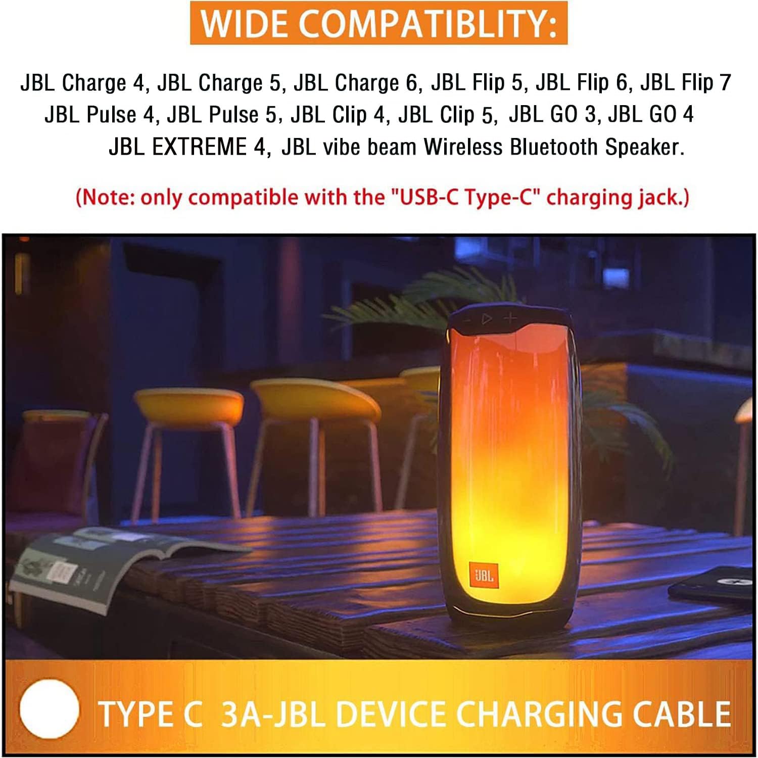 Wide Compatibility: JBL Charge 4, JBL Charge 5, JBL Charge 6, JBL Flip 5, JBL Flip 6, JBL Flip 7, JBL Pulse 4, JBL Pulse 5, JBL clip 4, JBL clip 5, JBL GO 3, JBL GO 4, jbl extreme 4, JBL vibe beam, JBL Endurance Peak 2, JBL Endurance Peak 3, JBLCHARGE4BLKAM, Wireless Bluetooth Speaker. (Note: only compatible with the "USB-C Type-C" charging jack.)