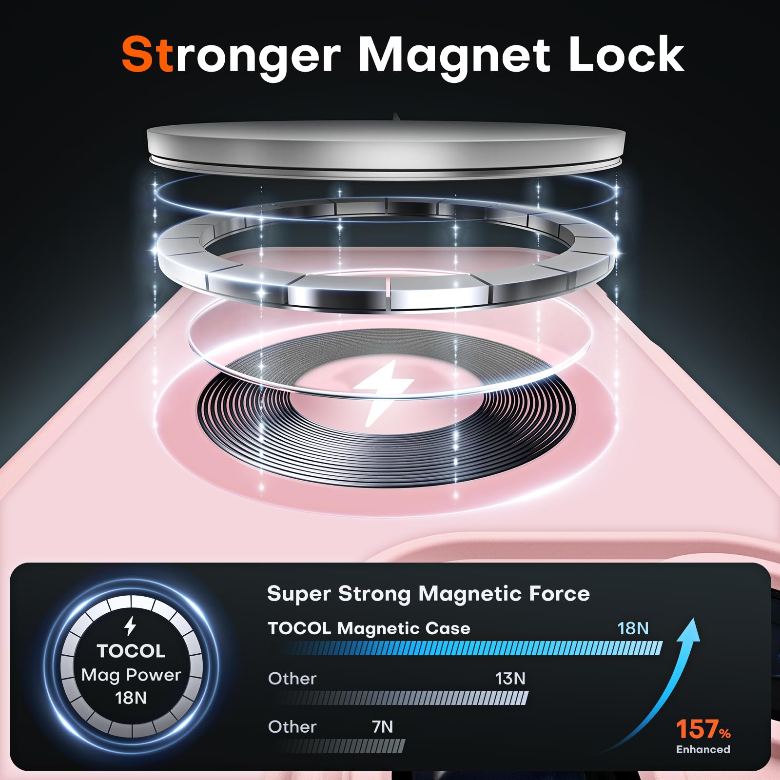 [Powerful Magnetic Charging]: TOCOL for iPhone 16 Pro Max case ensures a strong magnetic connection for wireless charging, with an integrated N52 magnetic ring that aligns perfectly with accessories like wallets, car mounts, and chargers. With 18N magnetic suction power (125% higher than factory standards), it provides enhanced safety and faster charging.
