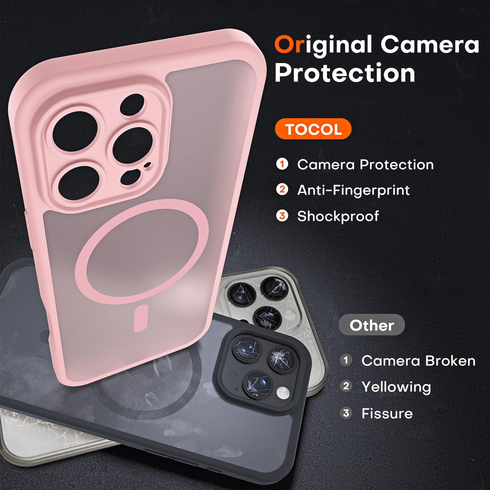 [Crafted for Camera Security]: Unlike other phone case, the TOCOL case for iPhone 16 Pro Max upgrades the camera surround protection, the camera cover is part of the case and not a separate piece. The camera frame is 0.8mm higher than the camera lens, which can protect your most precious camera lens from scratches and bumps and will not affect the quality of the photo.