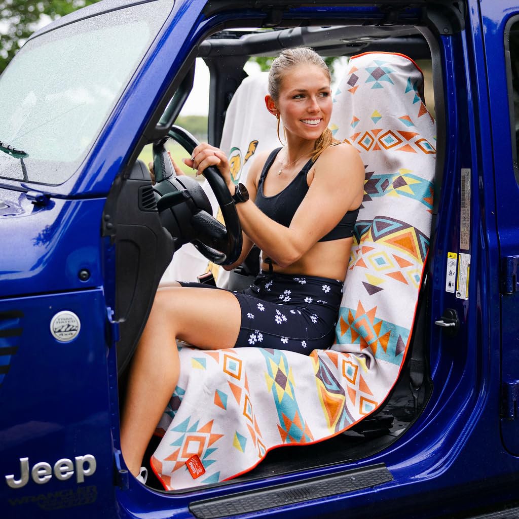 FIT & SIZE: Each towel is 62.5” X 32”and features a 10” x 32” pocket at the top to fit over a car seat headrest, beach chair or yoga mat.
