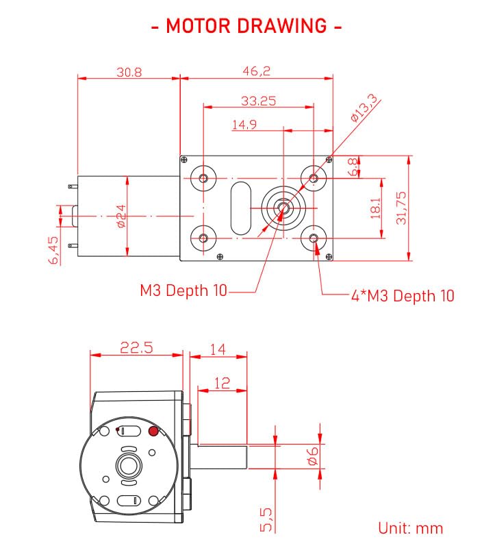 JGY-370 12V 6rpm, Rated voltage-12V DC, No load speed-6rpm, no load current-60mA, Rated speed-4rpm, rated torque-25kg.cm, rated current-0.5A