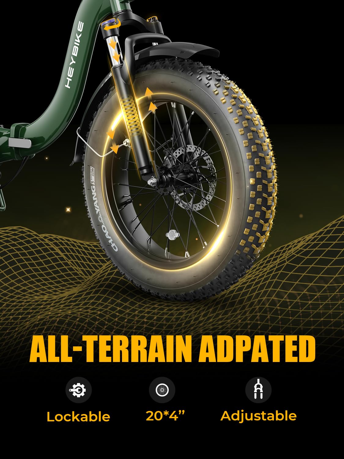 [For All-Terrain]- The 20 x 4 ”fat tires of Ranger 2.0 are like shoes for the earth, giving the rider the power to soar over any terrain, as steady as a rock, with unimpeded travel. Providing excellent grip and stability on soft beaches, slippery mud, and even ice and snow