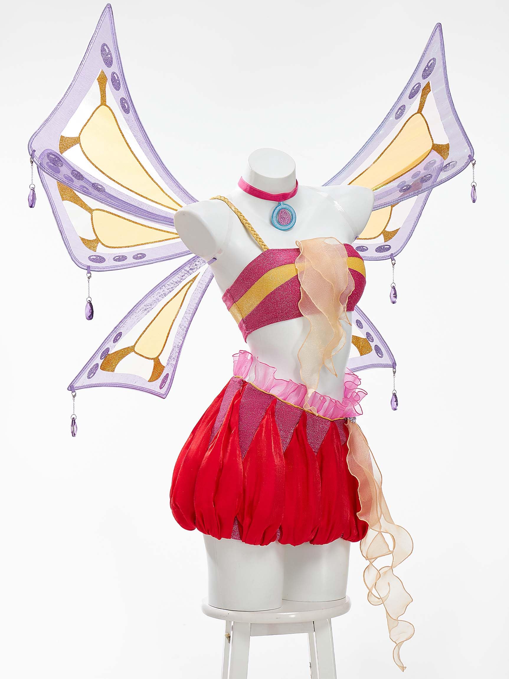 Complete Ensemble: The whole outfit for Winx Club Musa comes with Top × 1, Skirt × 1, Neck Accessory × 1, Leg Straps × 2, Gloves × 2, Leggings × 1, Headwear × 3, Accessory × 1, Wings × 1 (Requires Separate Purchase), Shoulder Straps × 2 (Requires Separate Purchase) for added authenticity.