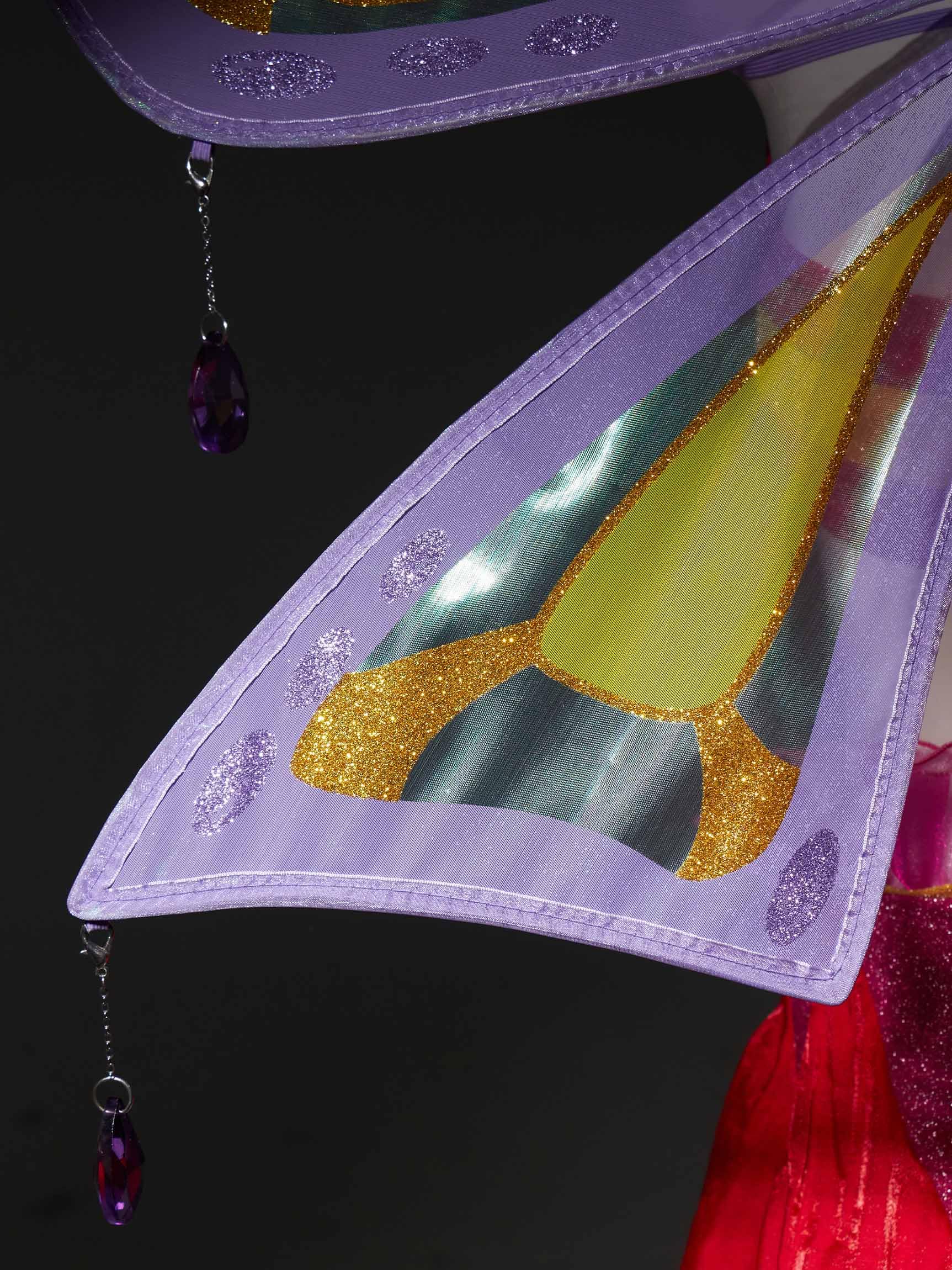 Quality Construction: Custom-made wings adjustable for wear on either side, featuring detachable and storable beaded strands; the garment utilizes hybrid shimmer materials for an elegant, textured look; the skirt is cotton-stuffed to achieve a a nice full and puffy shape, this cosplay costume ensures durability and comfort during extended wear, whether for conventions, cosplay events, or themed parties.