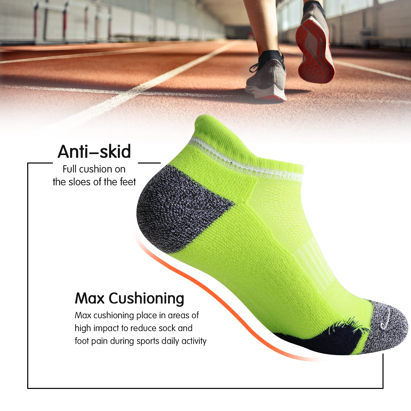 Description Mens Low Cut Athletic Ankle Performance Workout Socks for Men Pack About Us -Our goal is to be one of the best supplier and retailer of socks.We design -socks according to fashion trend. The Socks fit for all seasons. The low cut athletic socks have a well-engineered "Y" heel design fit that ensures that heel area are comfortable at all times. They also can prevent blisters and chafing while improving overall comfortable. Max Cushioning place in areas of high impact to reduce sock and foot pain during sports or daily activity. Wash: Machine wash,tumble dry/Air dry,only non-chlorine bleach when needed,do not iron.