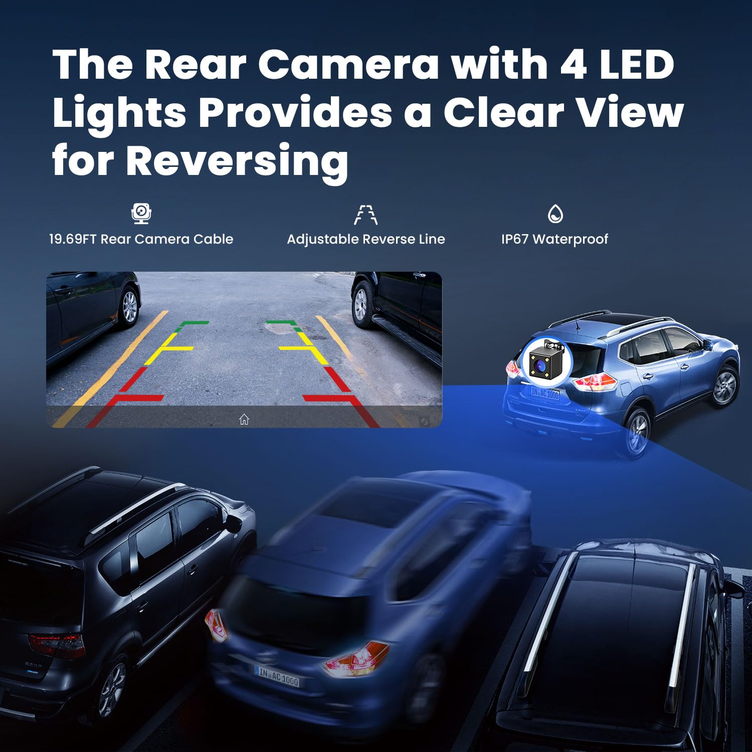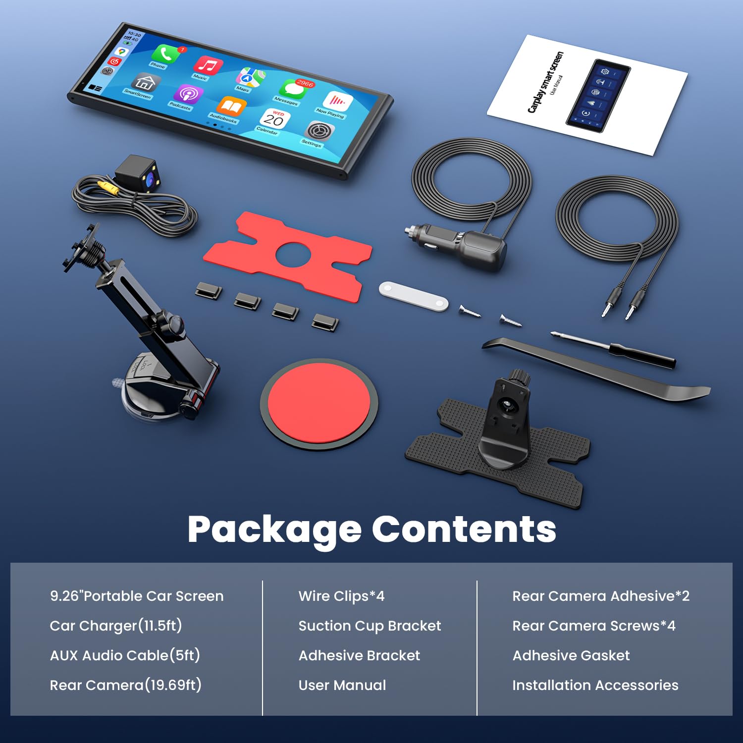 Safer Parking with Backup Camera: Equipped with a waterproof rearview camera and night vision support, the Krunia 9.26-inch wireless CarPlay screen automatically displays the reverse image when parking, making night-time maneuvers safer and easier