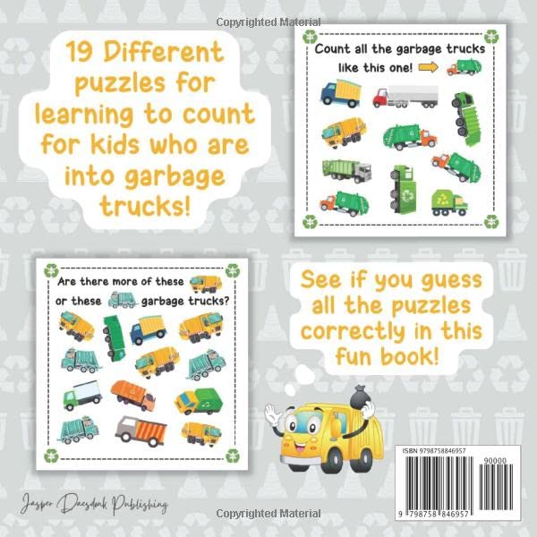 Let garbage trucks run wild! - Make the perfect gift for any child who loves spying and counting! Can you count all the garbage trucks in the picture? Can you count which trash trucks are more? or find two of the same garbage trucks? You'll soon discover in this fun game, Count The - Garbage Trucks! FULL-COLOR PAGES! 19 Different puzzles to spy and count Unique illustrations High-quality product Colorful interior that catches the child's eye Cute Vehicles-theme A perfect book for little hands with toddler learners. They can start with little eye things to spot or eye spy toddler They'll develop observational skills, learn to count objects, and they'll be having so much fun they won't even know they're learning! Details: 41 Pages in total Printed on high-quality paper Beautiful designs appropriate for kids ages 2-5 and all ages Soft glossy cover Great gift for both a boy and a girl! 8.5 x 8.5 Size - Perfect for little hands Get this fun activity book today by clicking the "Buy Now" button.