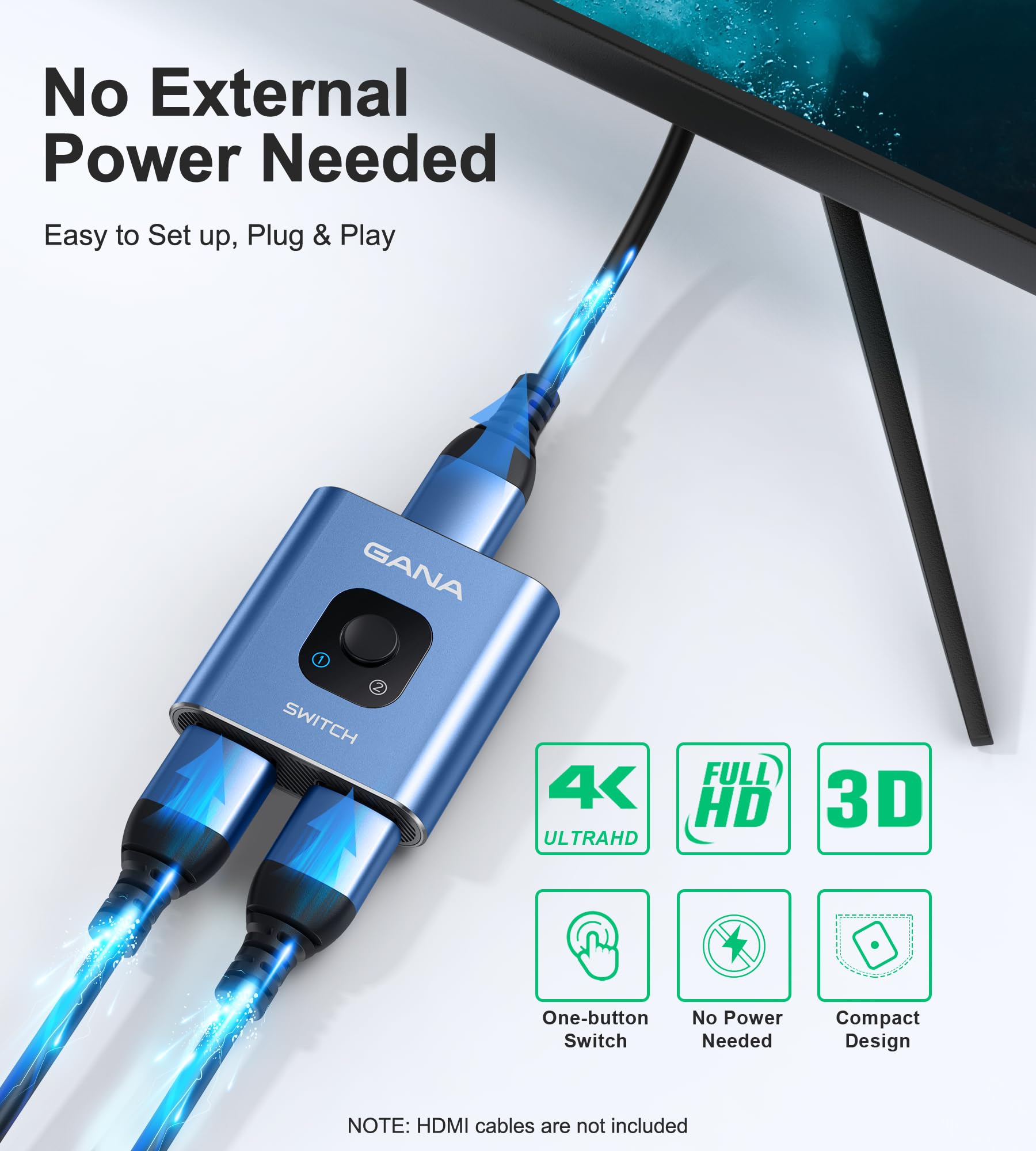 【No External Power Needed】 This 4k HDMI Switch Box is easy to use, no external power is required, just simply press the button on the HDMI switch box to make shift of input or output source. It comes with lifetime technical support & friendly customer service and would solve your issue within 12 hours. So pls contact us by message-centre if you encounter any issue while during the use.