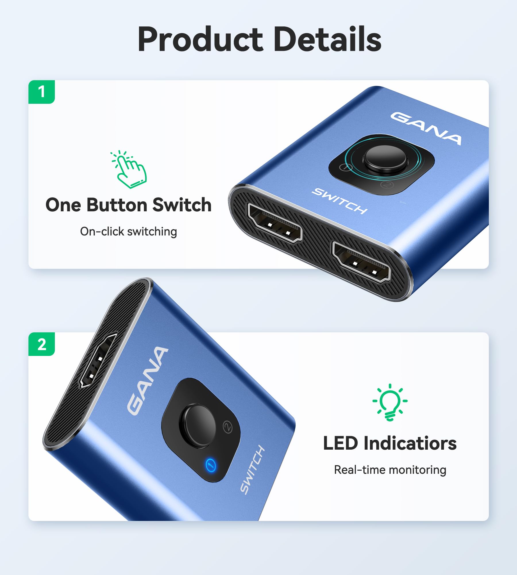 【Fast and Stable Transmission】This aluminum HDMI AB Switcher not only support high bandwidth 3.4Gbps data transmission, but also ensure stable and high-definition display of audio and video, reduce data transmission loss and improve signal transmission efficiency.