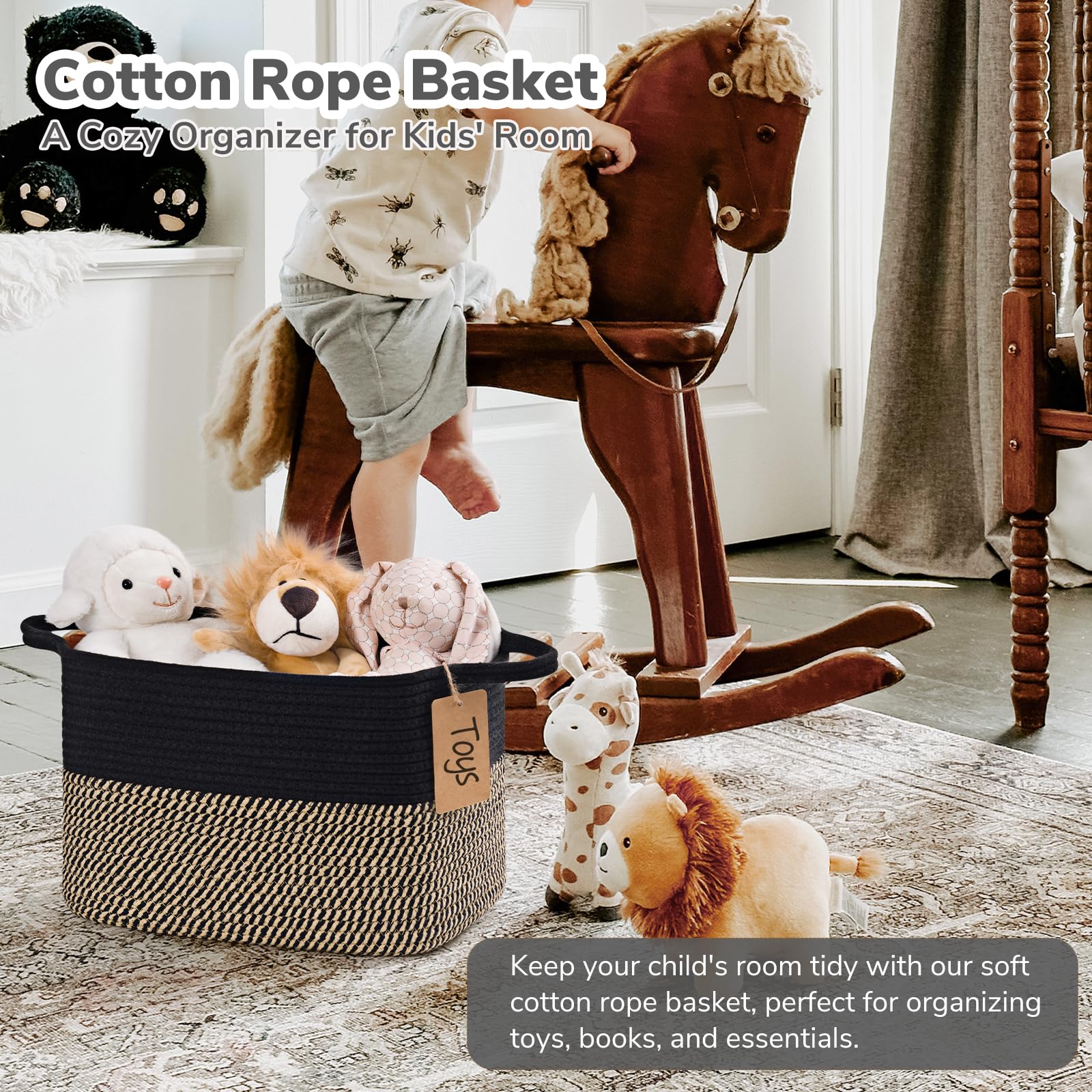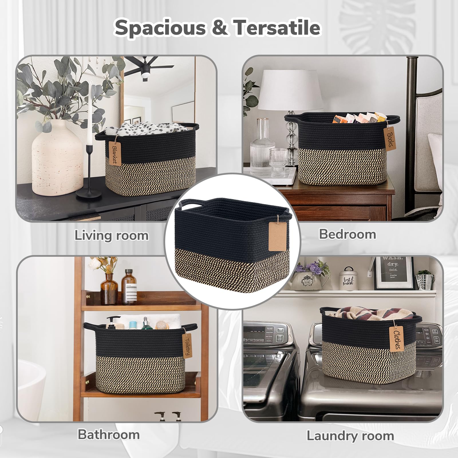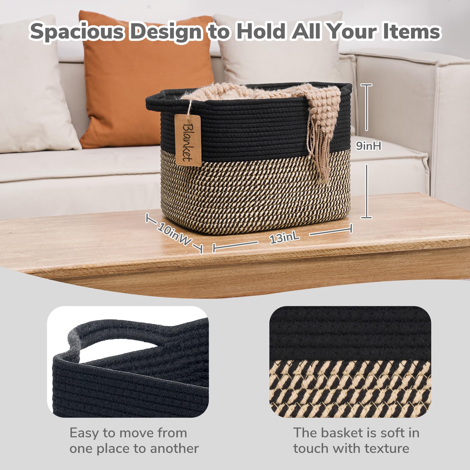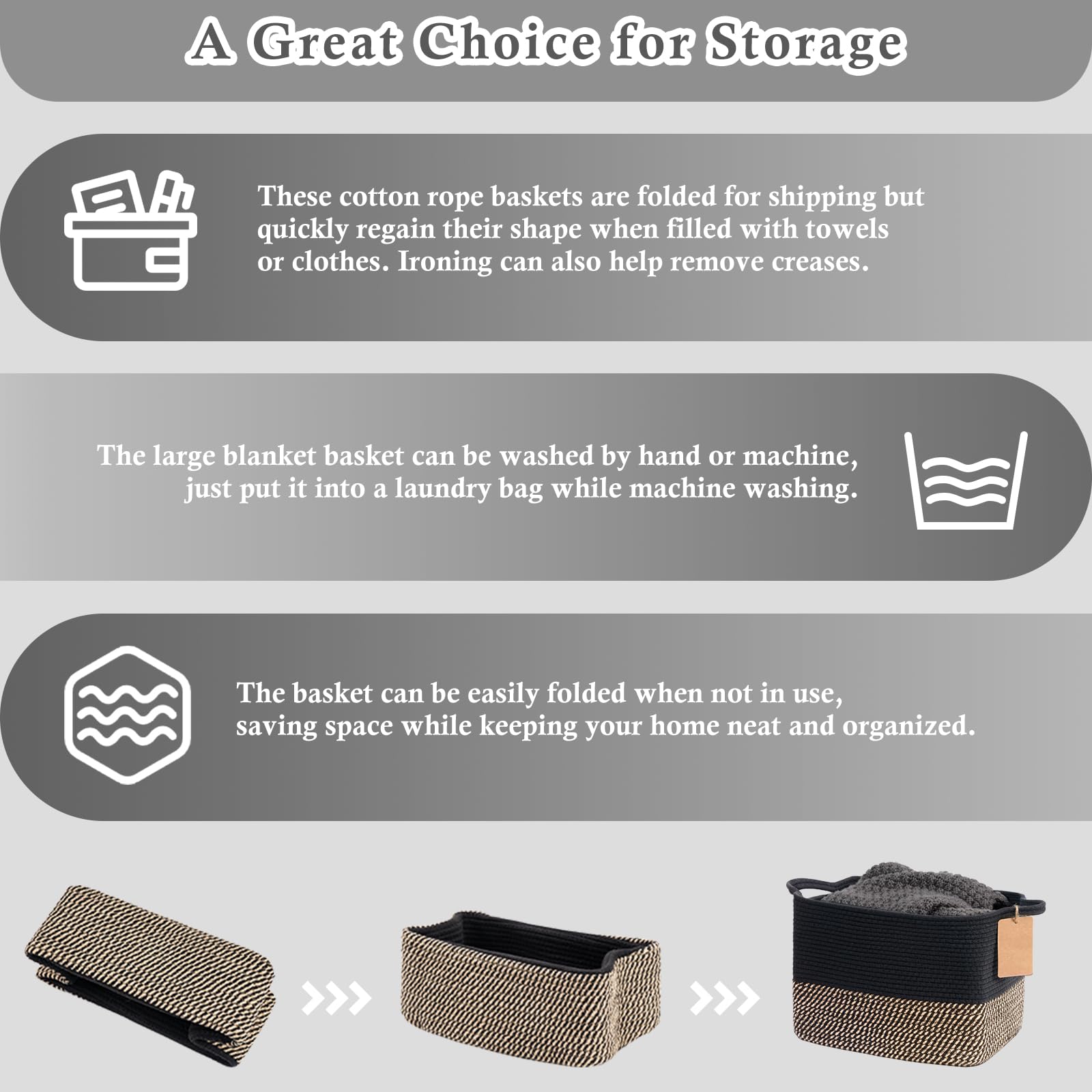 Multifunctional Towel Basket: Measuring 13 x 10 x 9 inches, this basket offers generous storage space. Crafted from soft cotton rope, it's both safe and stylish, perfect for organizing everyday items like books, toys, or office supplies on shelves, keeping your living space tidy