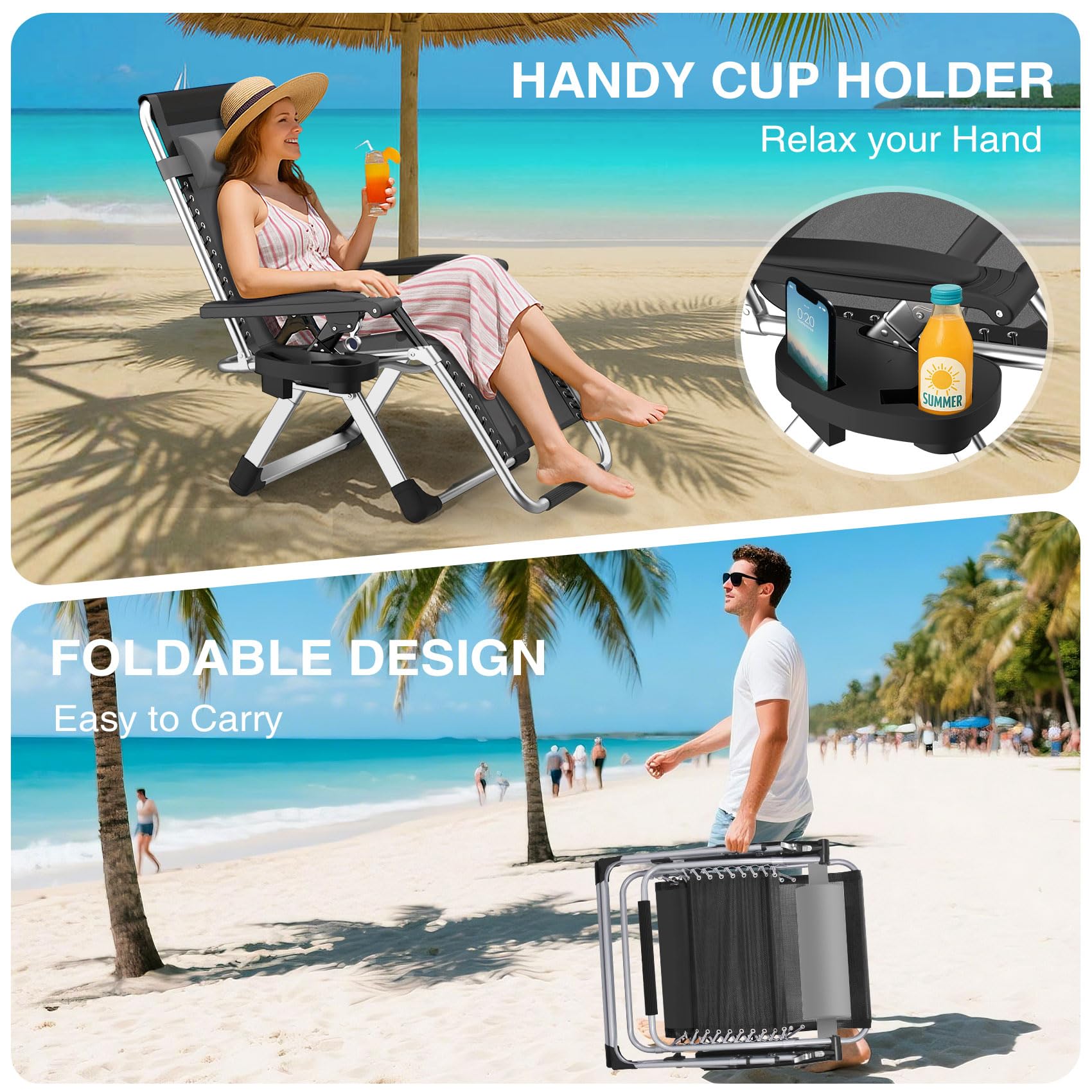 【Portable and Multifunctional】This foldable zero gravity lawn chair requires no assembly and can be easily folded and unfolded in seconds. Its lightweight design makes it easy to carry, and suitable for various locations like yards, lawns, patios, decks, gardens, courtyards, balconies, pools, and beaches
