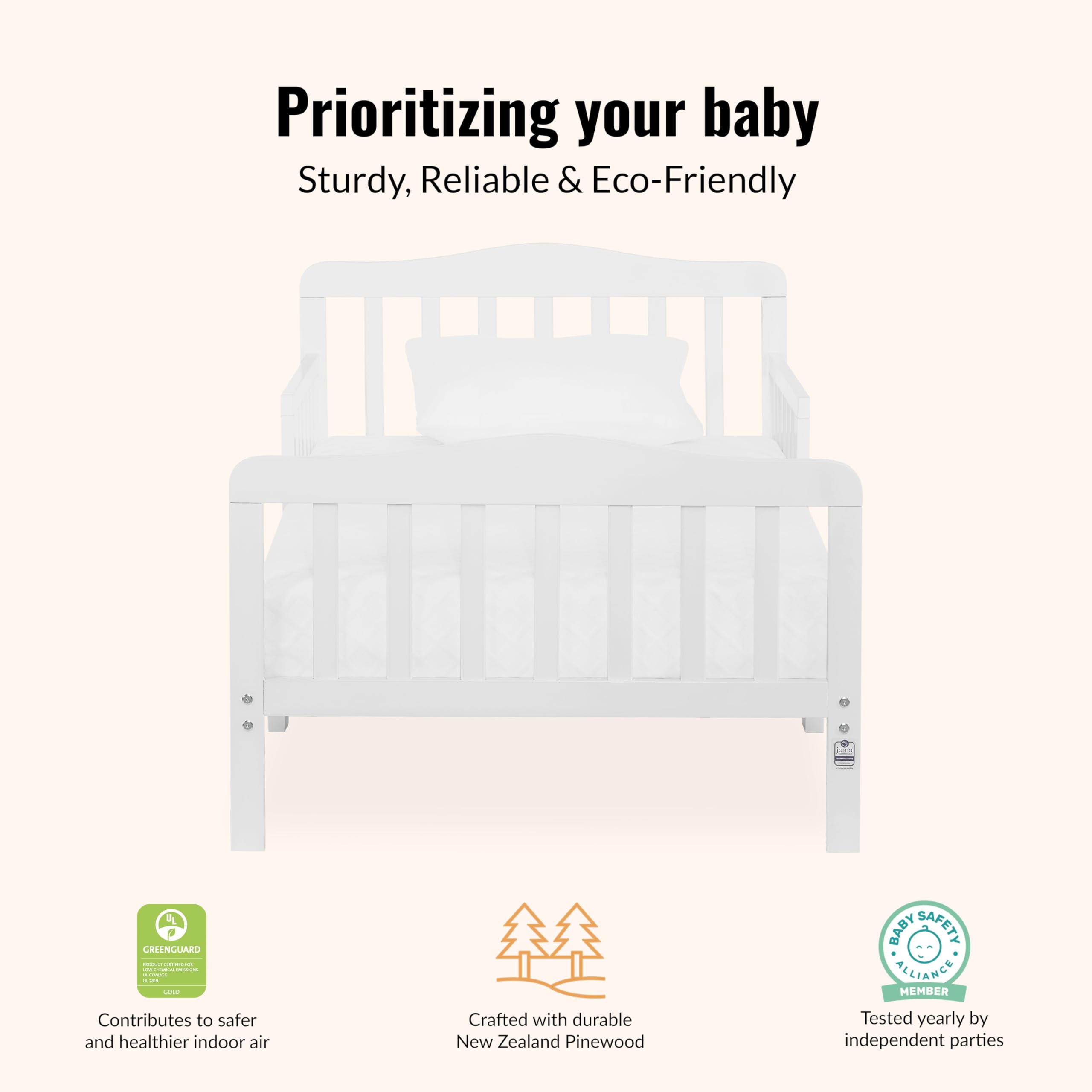 SAFETY FIRST: The toddler bed is JPMA certified and designed to meet or exceed all applicable ASTM and CPSC standards; It is free of phthalates, latex, lead and BPA and its design is ergonomic, stable and sturdy