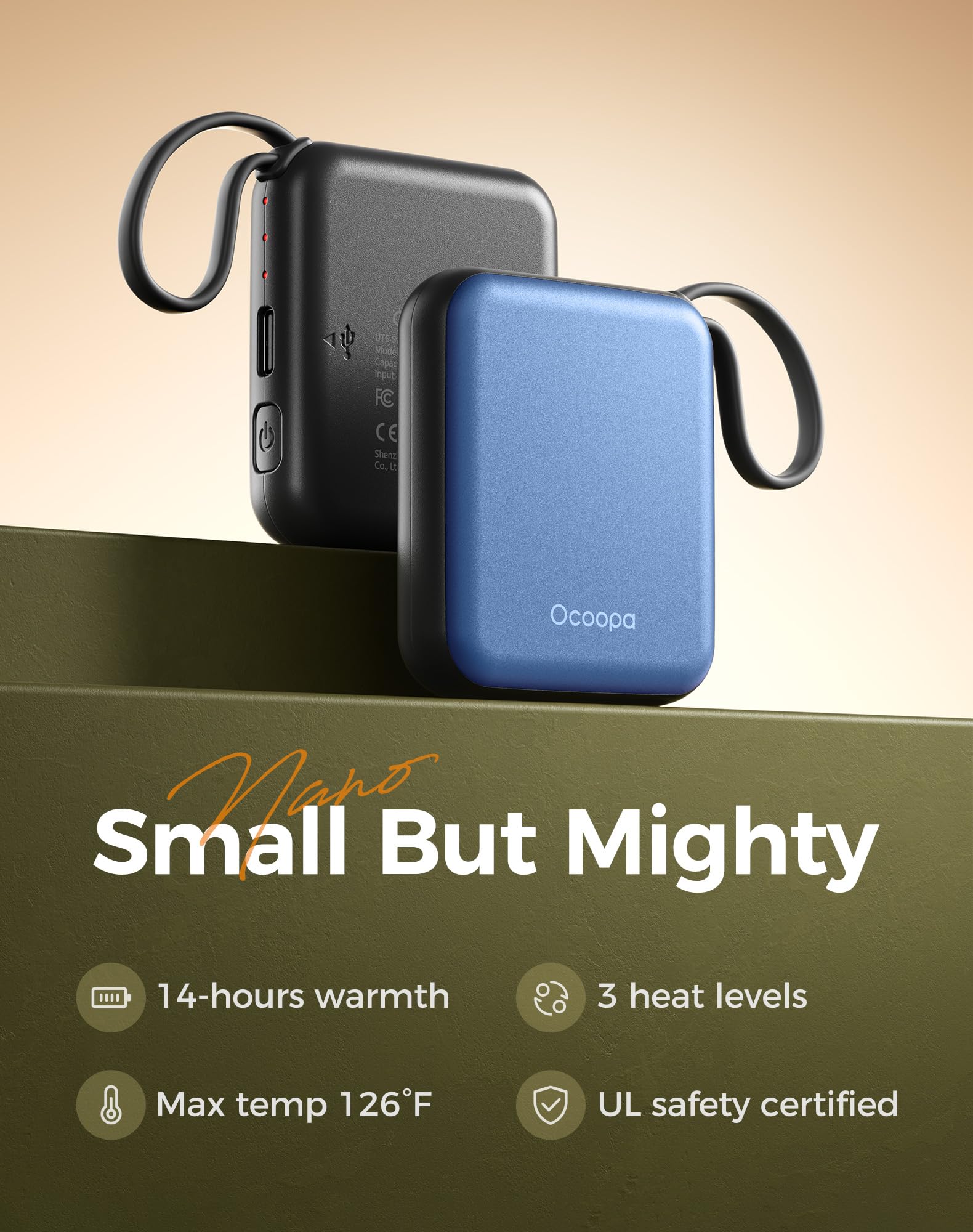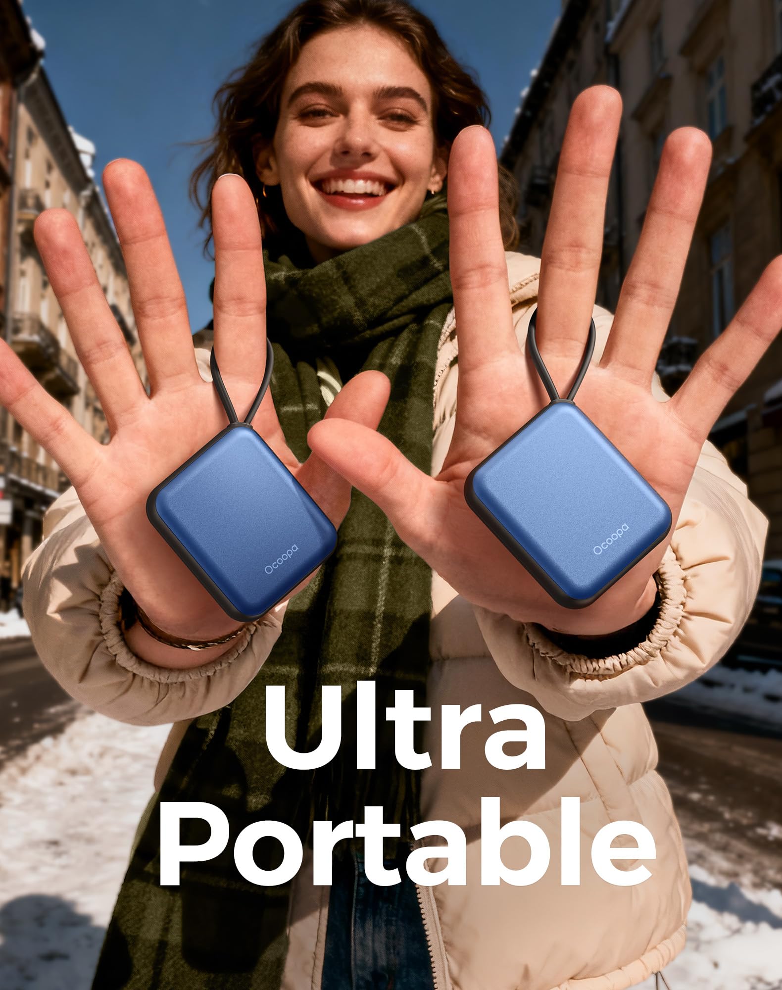 3.5-7 Hours All-Day Long-Lasting Heat — Keeps hands cozy from your morning walk to evening dinner without mid-day charging.