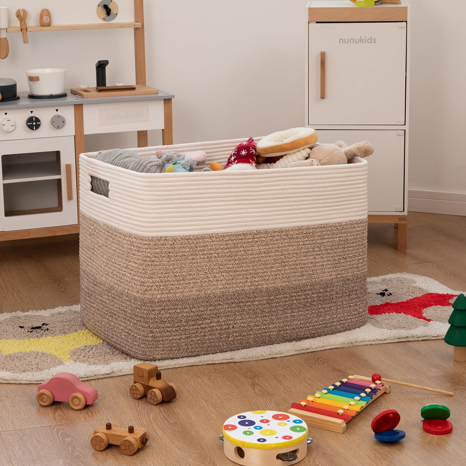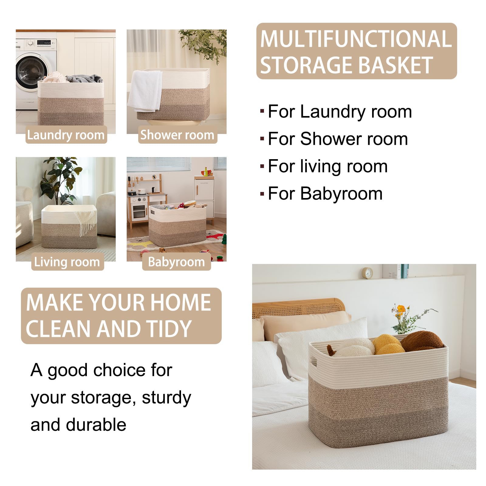 100% Cotton Rope Storage Basket:OIAHOMY laundry basket is made of 100% natural cotton, chemical and odor free, there are no sharp or hard edges to scratch floos, and safe for kids and pets. It is more firm than plastic basket